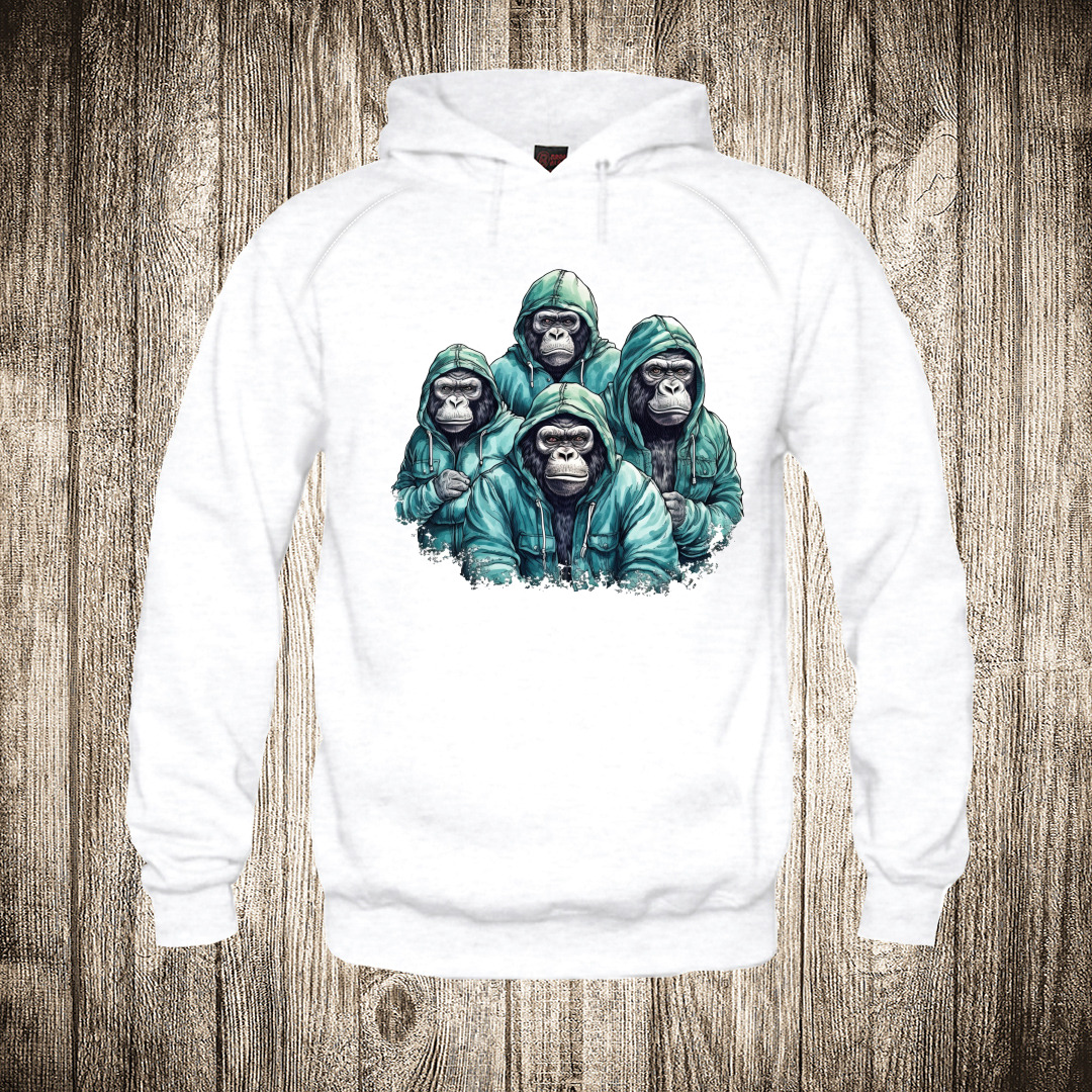 muska majica boja bela slika 4 majmuna sa kapuljacom