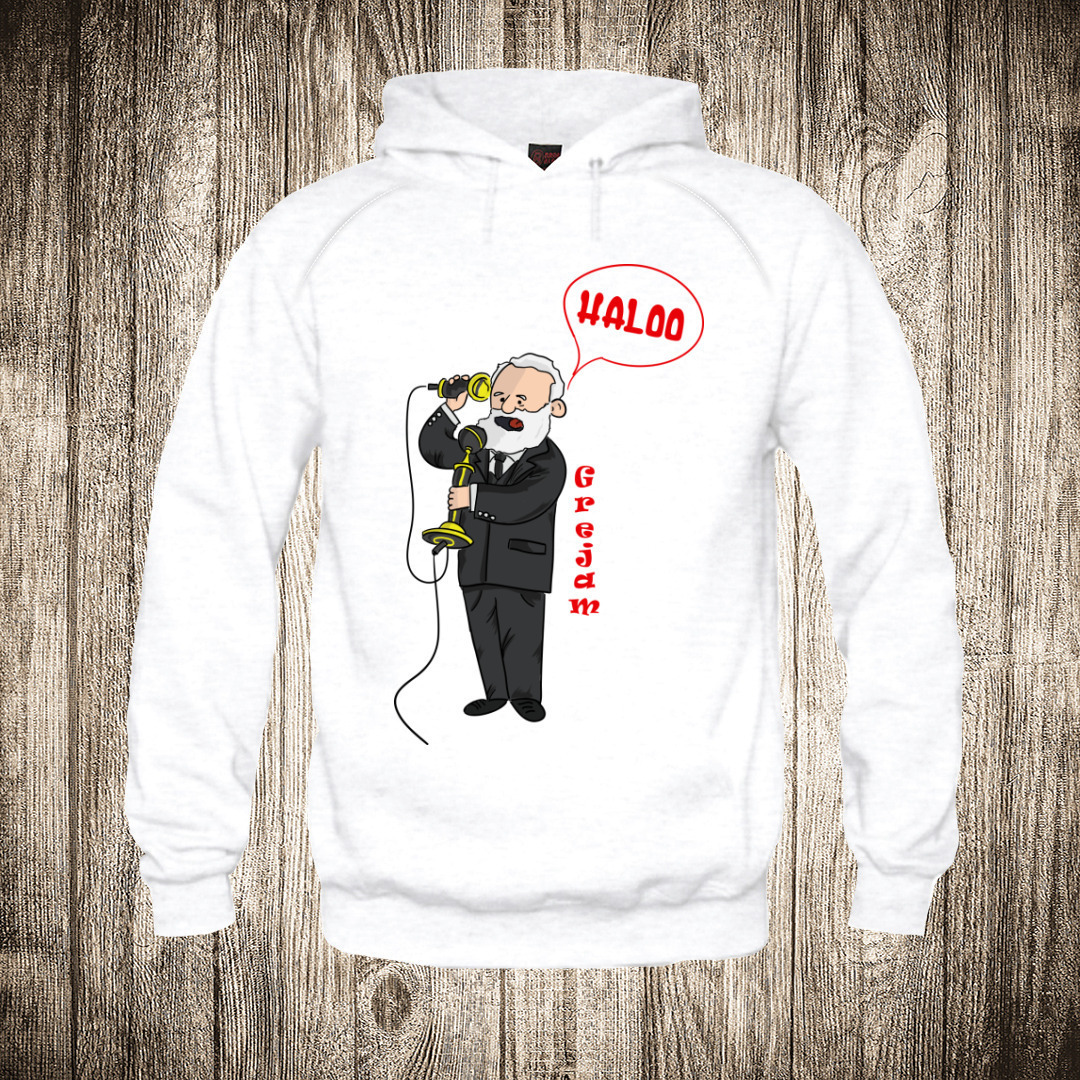 duks sa kapuljacom boja bela slika aleksandar grajam bel telefon
