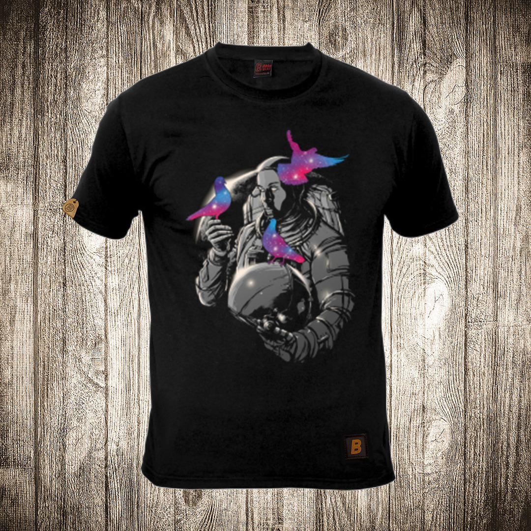 muska majica boja crna slika astronaut 18 ptica