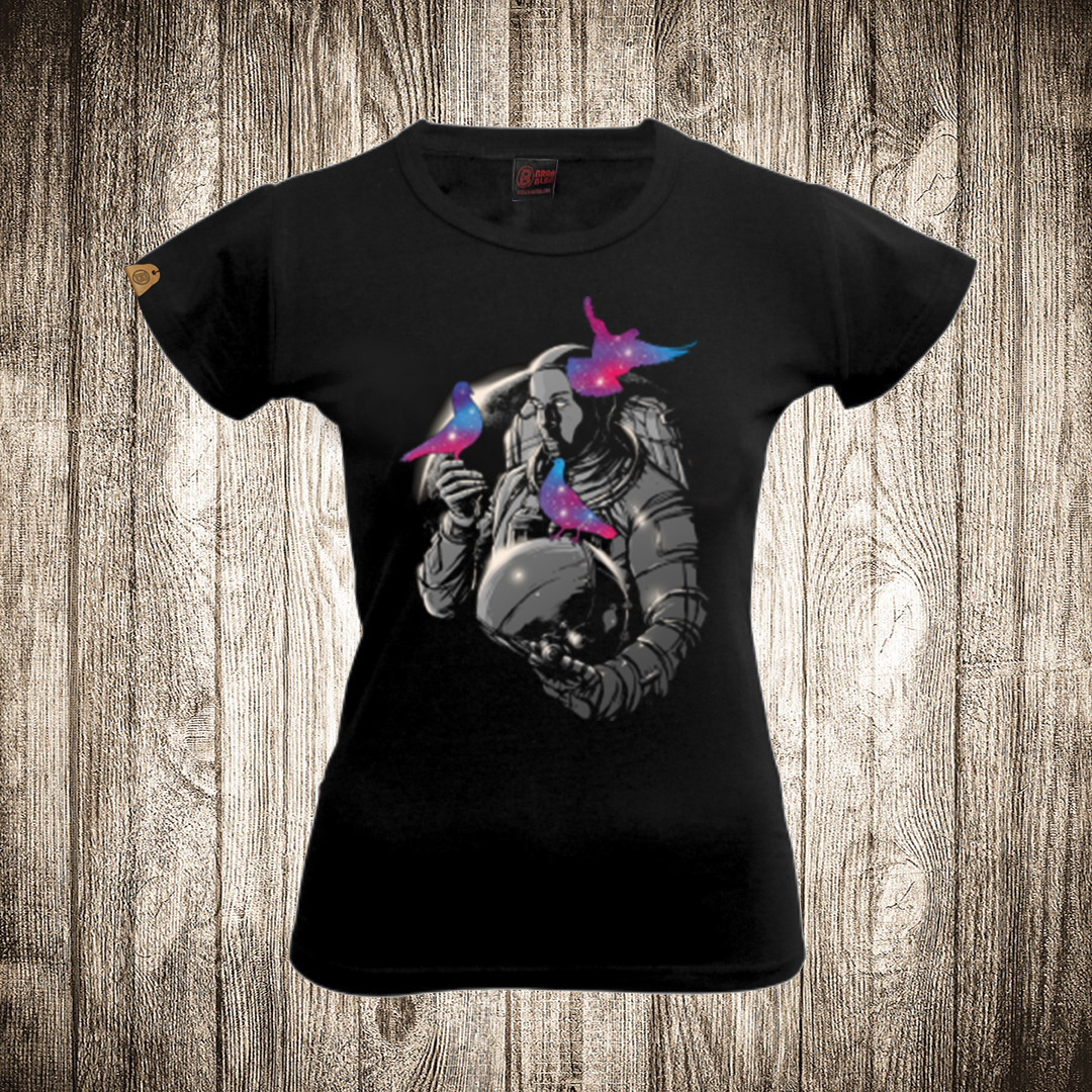 zenska majica boja crna slika astronaut 18 ptica