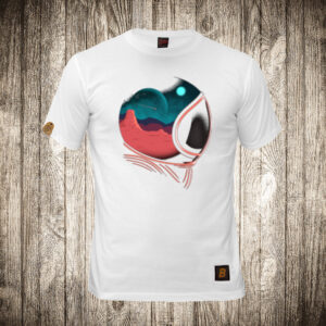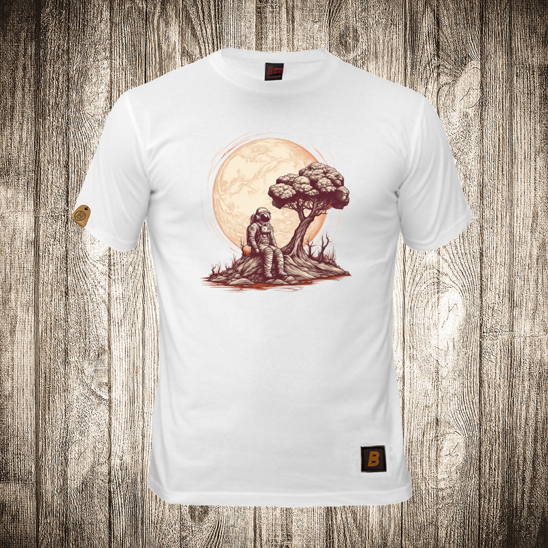 muska majica boja bela slika astronaut na nepoznatoj planeti 2