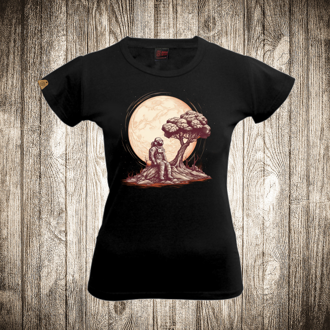 zenska majica boja crna slika astronaut na nepoznatoj planeti 2
