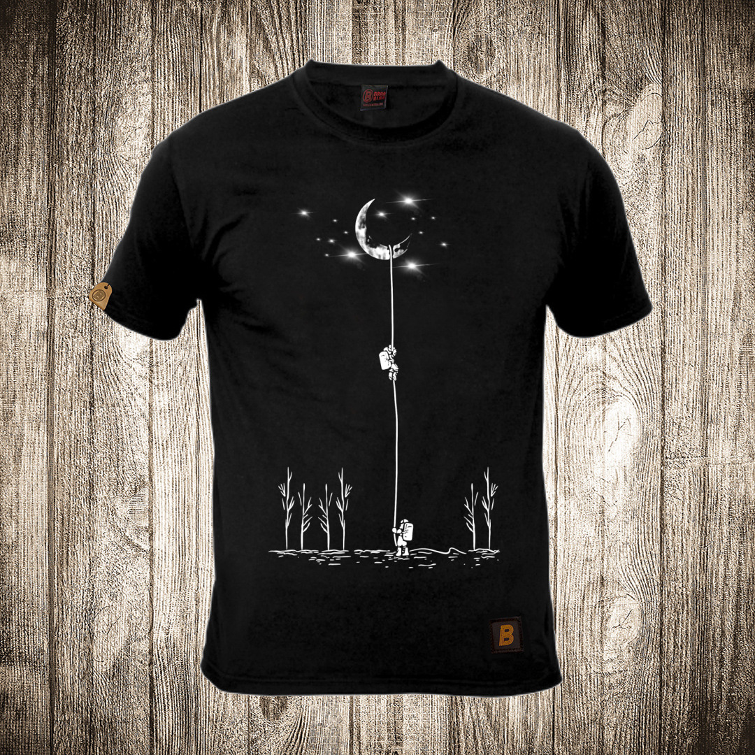 muska majica boja crna slika astronauti se penju na mesec