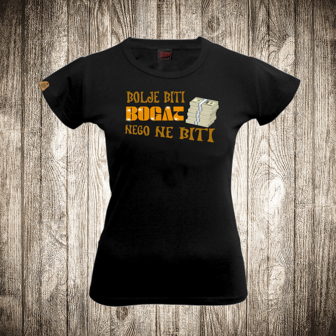 zenska majica boja crna slika bolje biti bogat nego ne biti