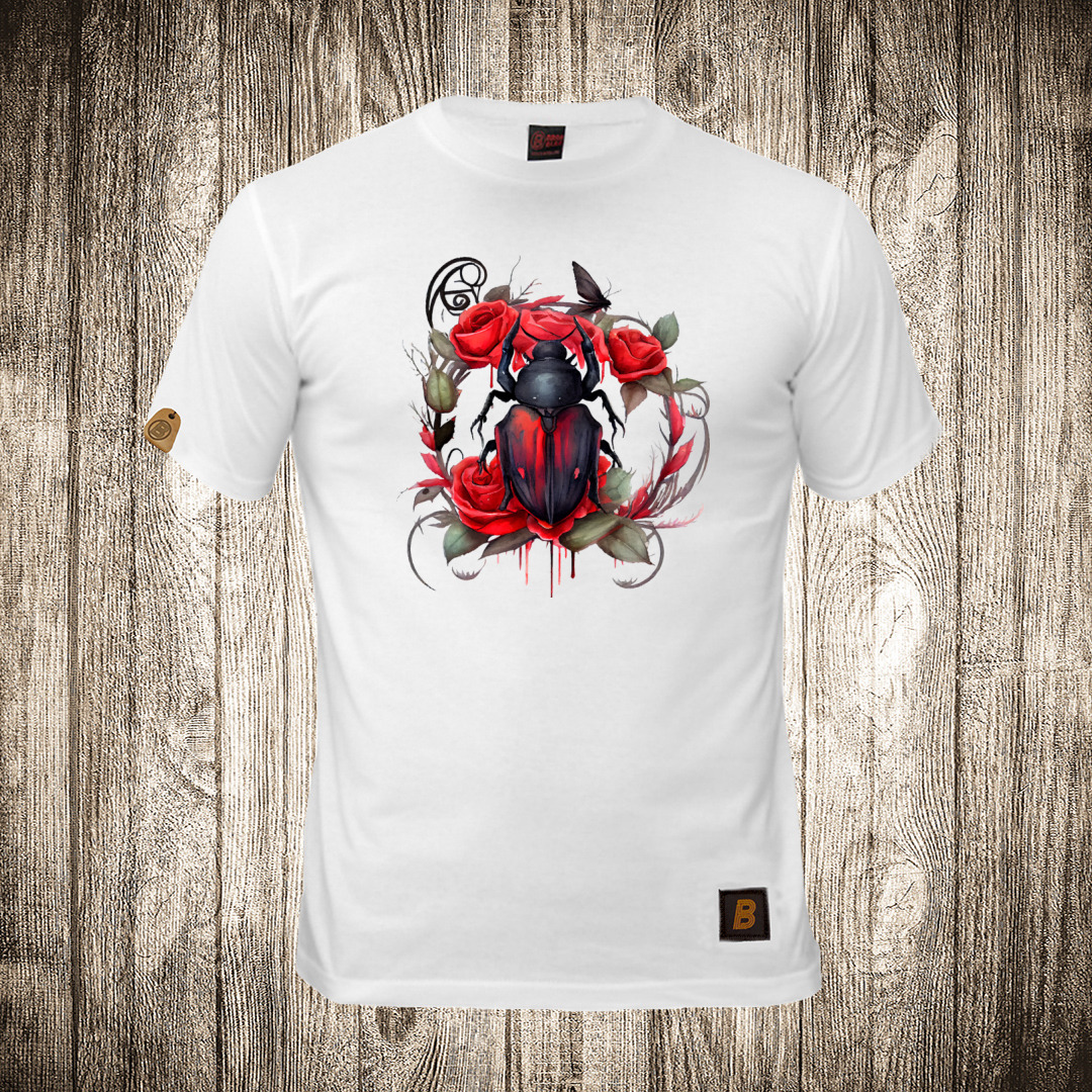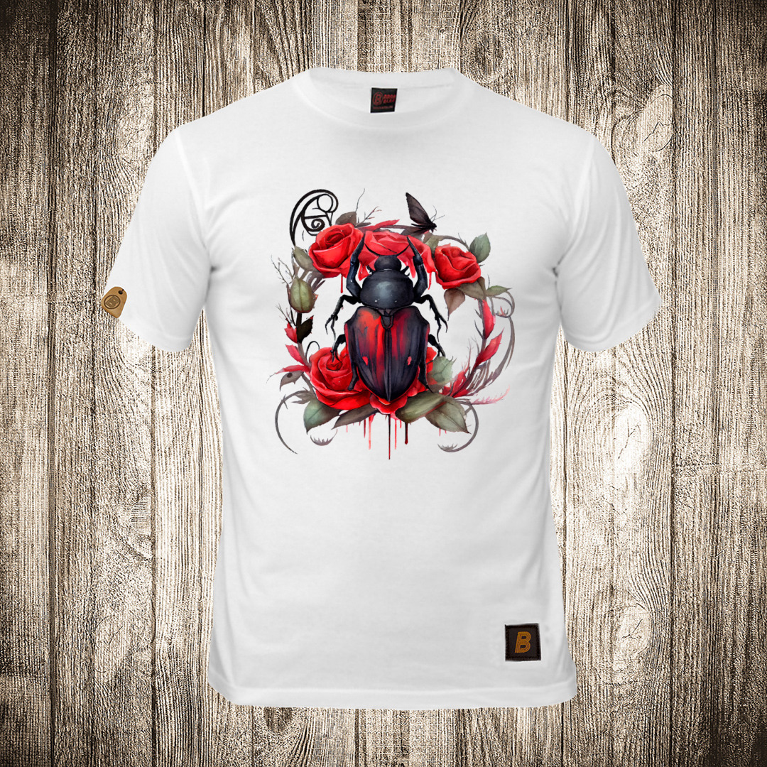 muska majica boja bela slika buba i cvece vodene boje