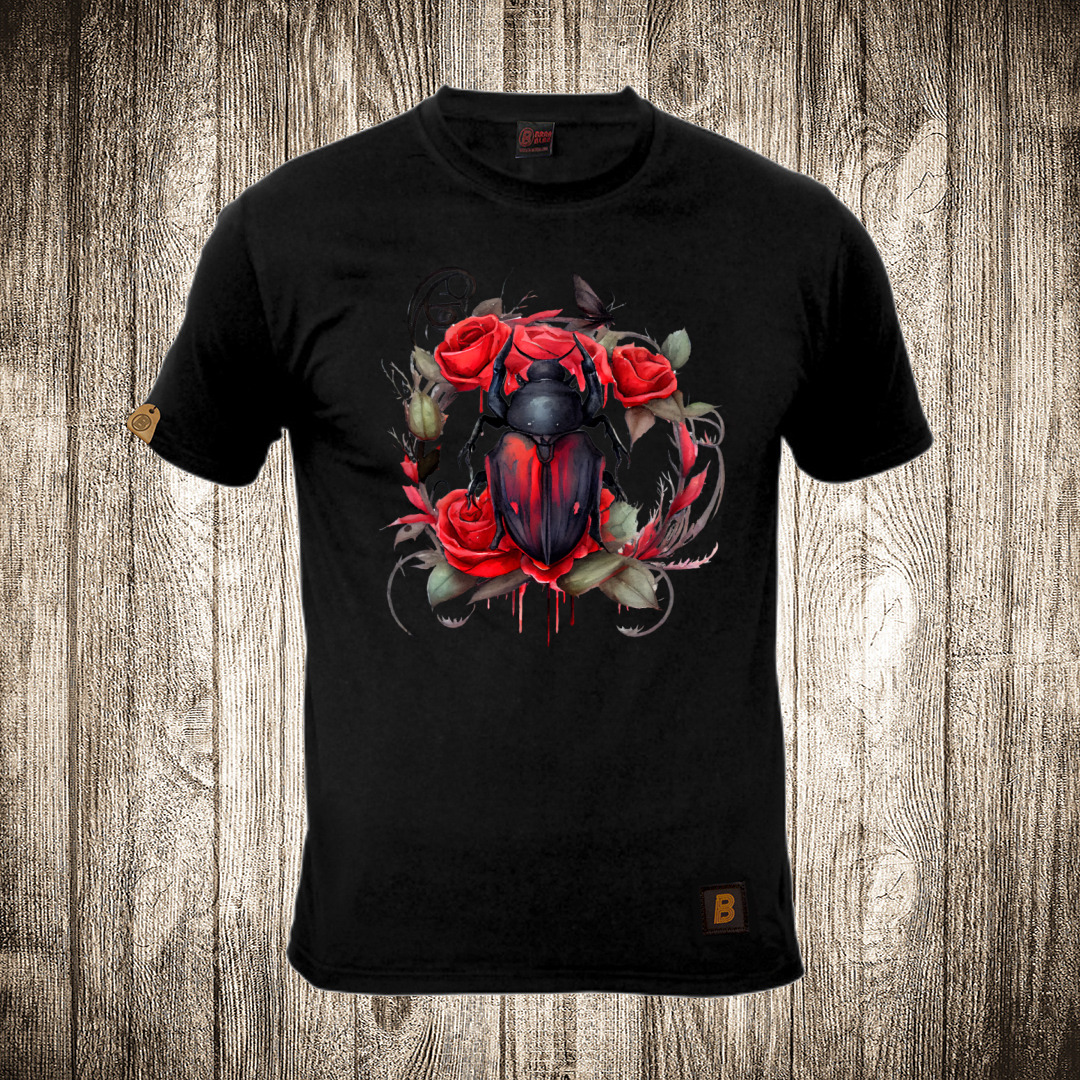 muska majica boja crna slika buba i cvece vodene boje