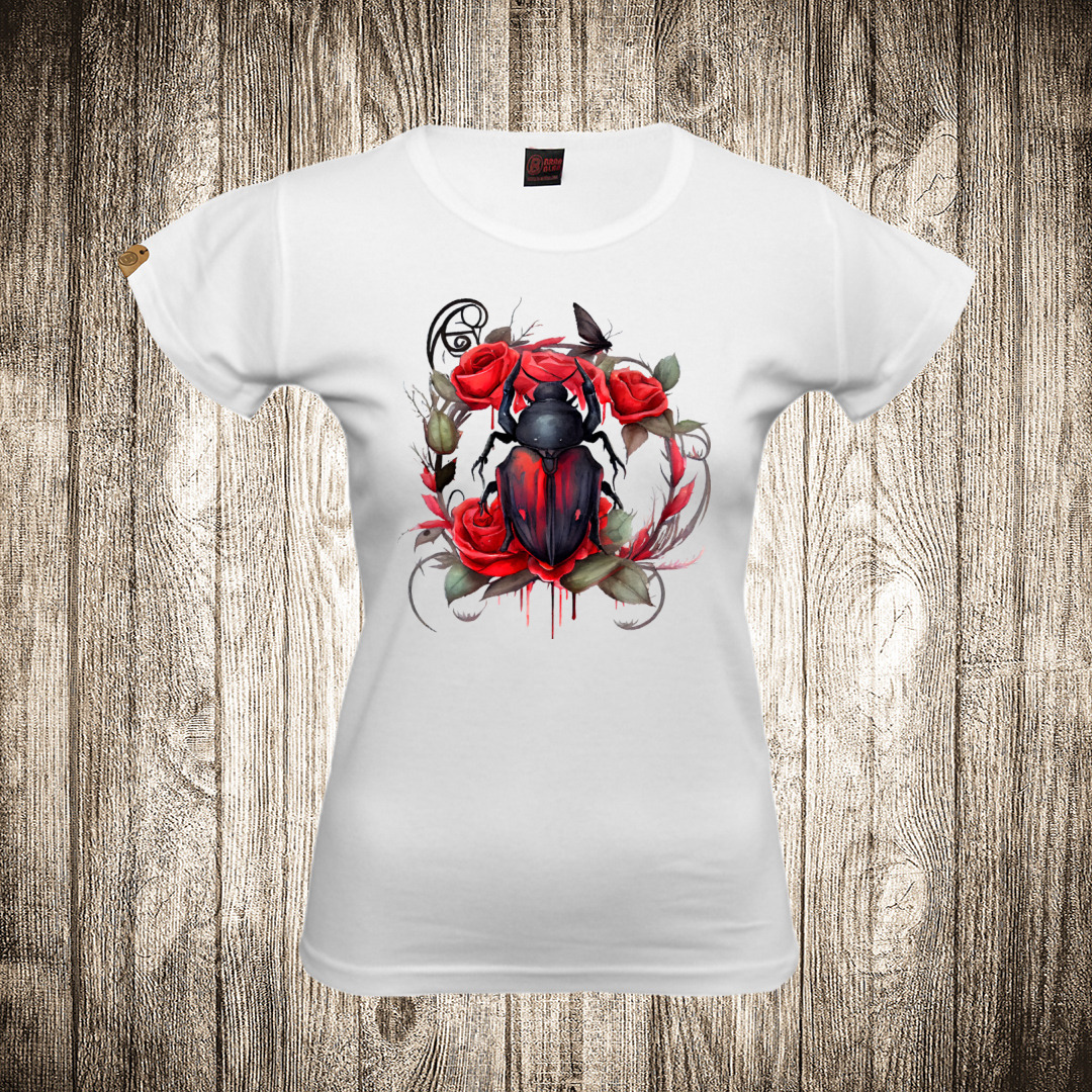 zenska majica boja bela slika buba i cvece vodene boje
