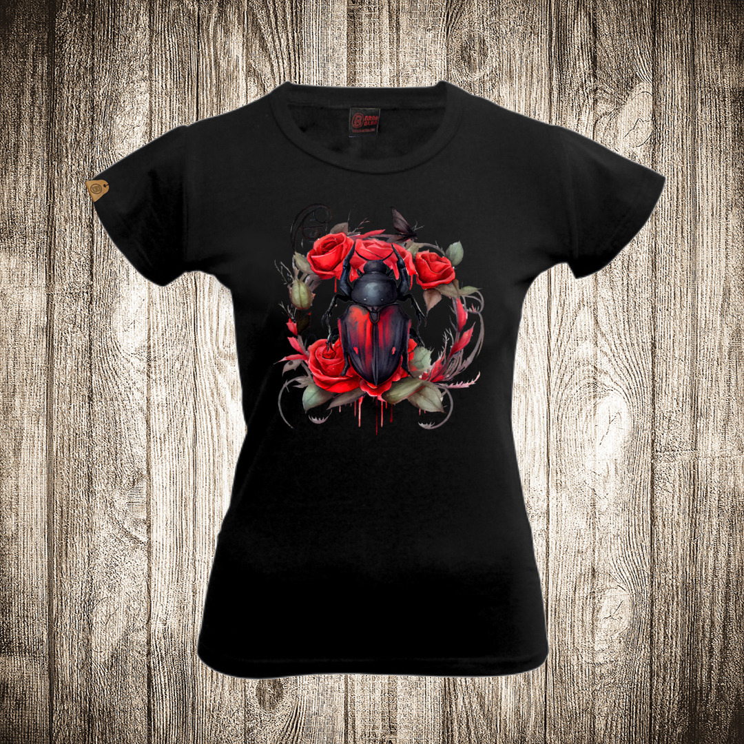 zenska majica boja crna slika buba i cvece vodene boje