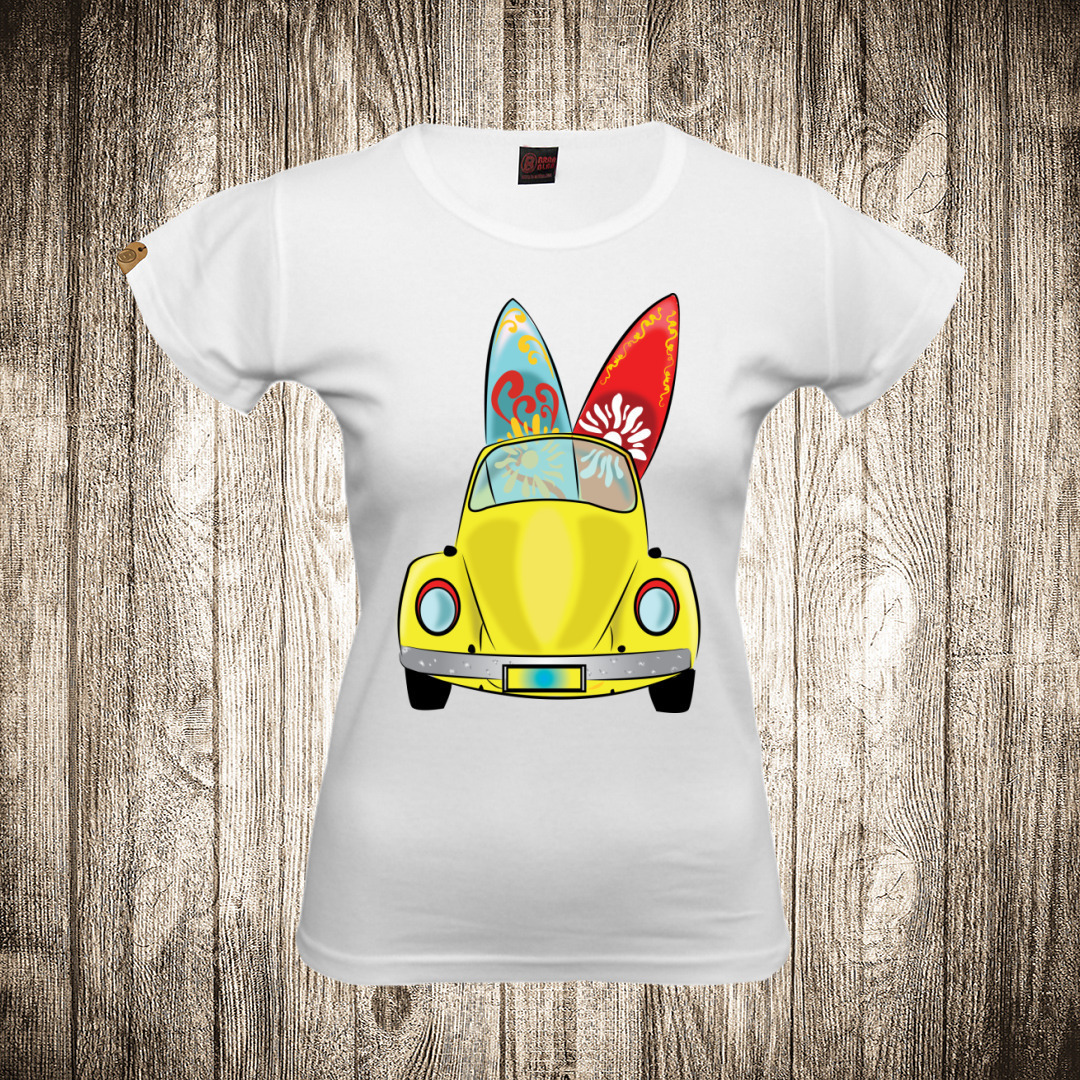 zenska majica boja bela slika buba surf daske