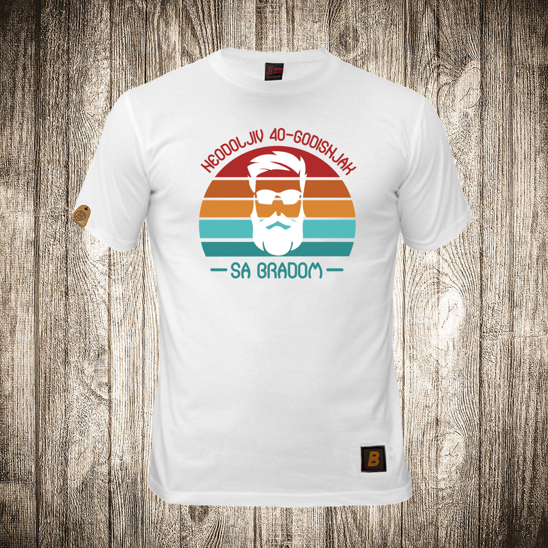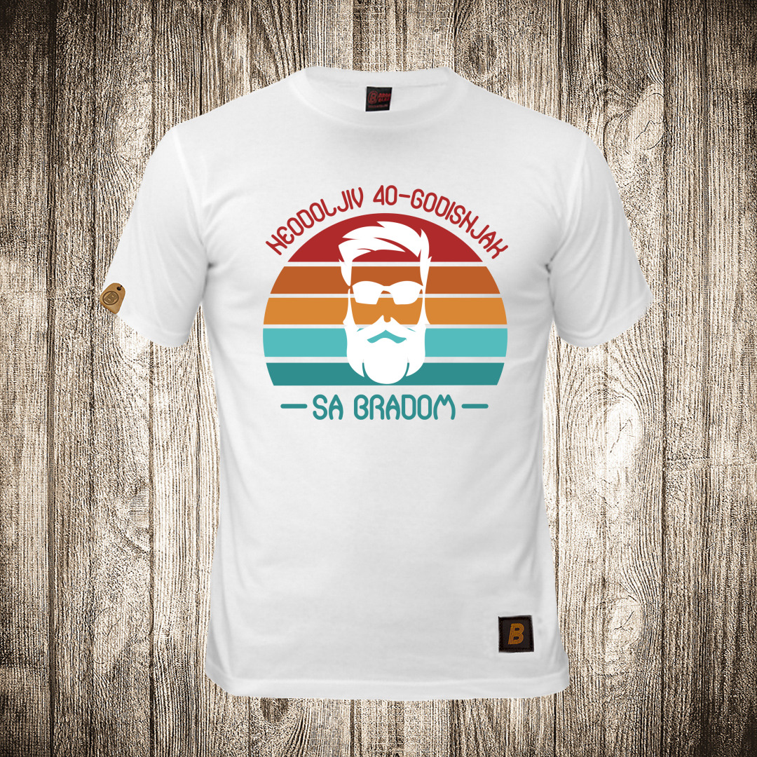 decija majica boja bela slika cetrdesetogodosnjak sa bradom