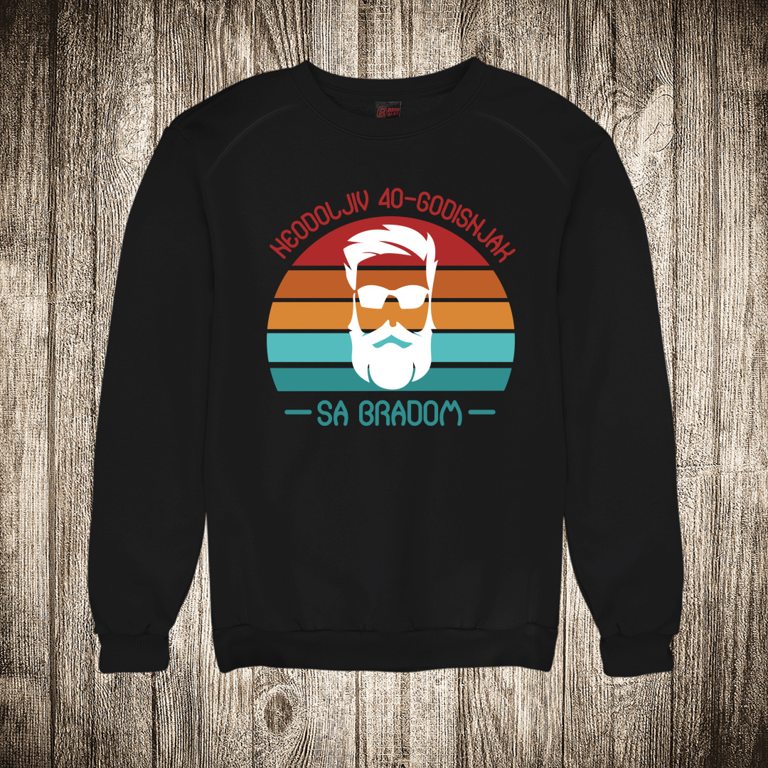 duks bez kapuljace boja crna slika cetrdesetogodosnjak sa bradom