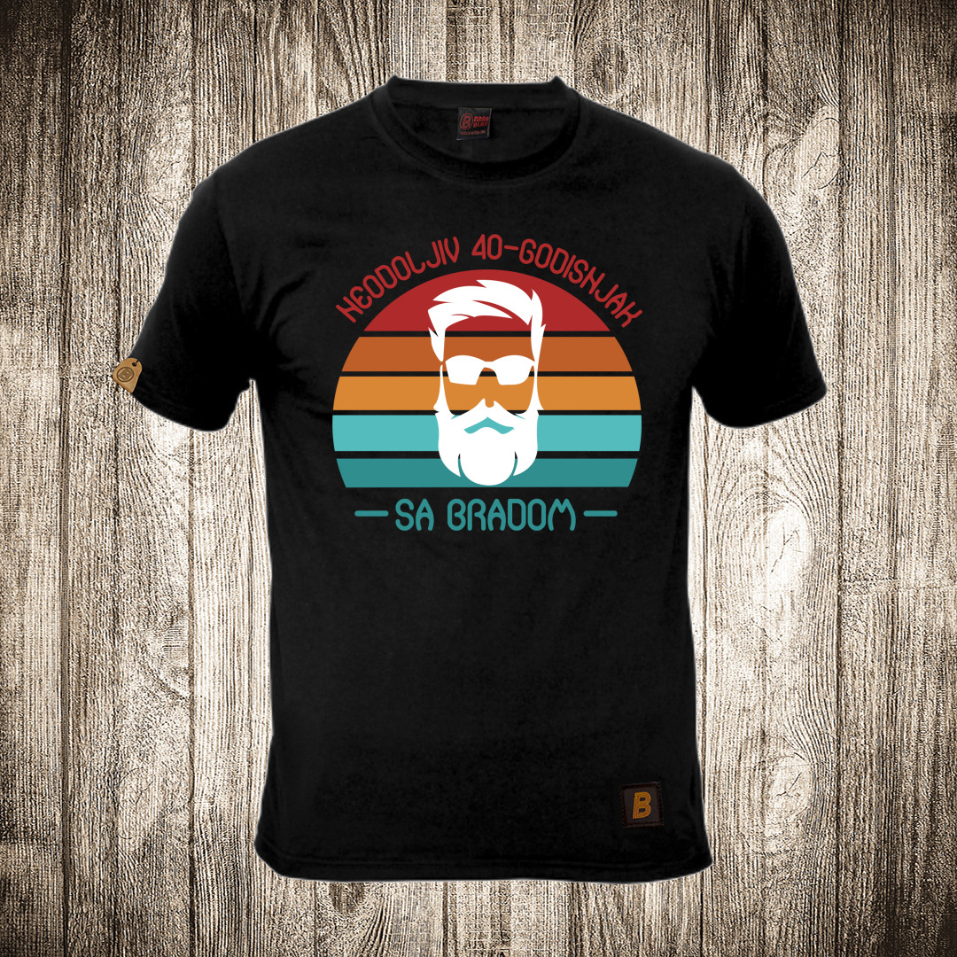 muska majica boja crna slika cetrdesetogodosnjak sa bradom