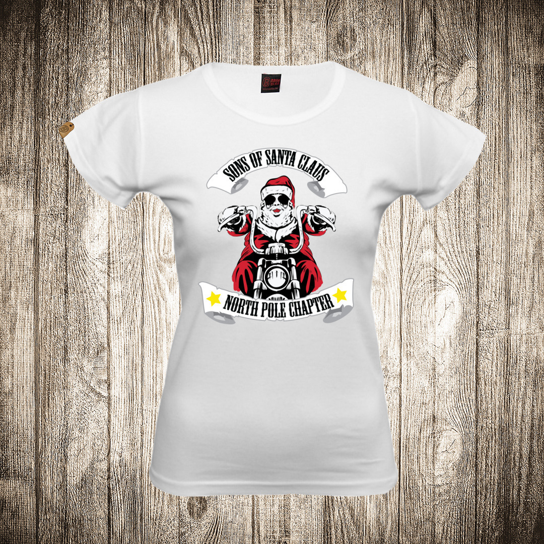 zenska majica boja bela slika deda mraz motorista sin anarhije
