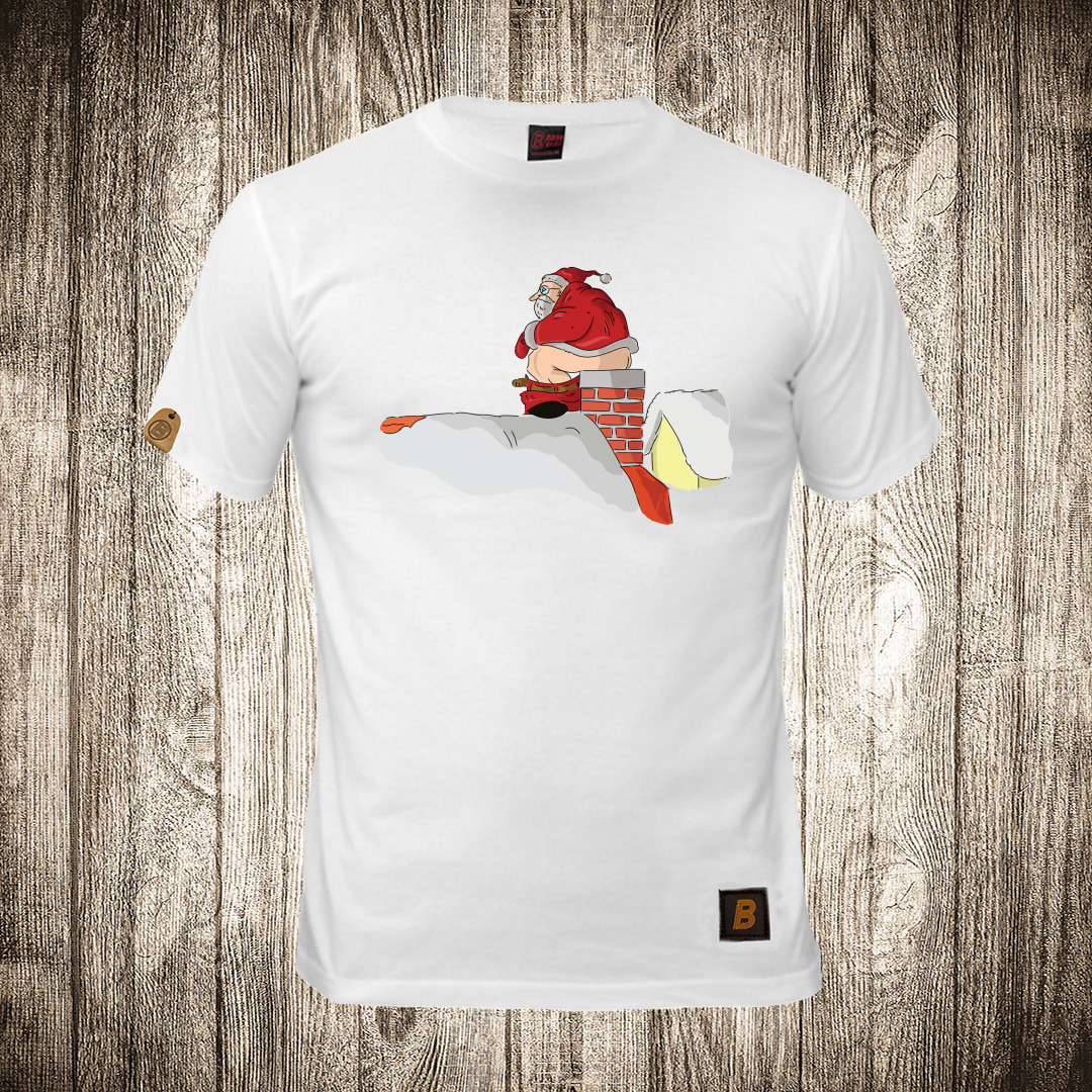 muska majica boja bela slika deda mraz na krovu