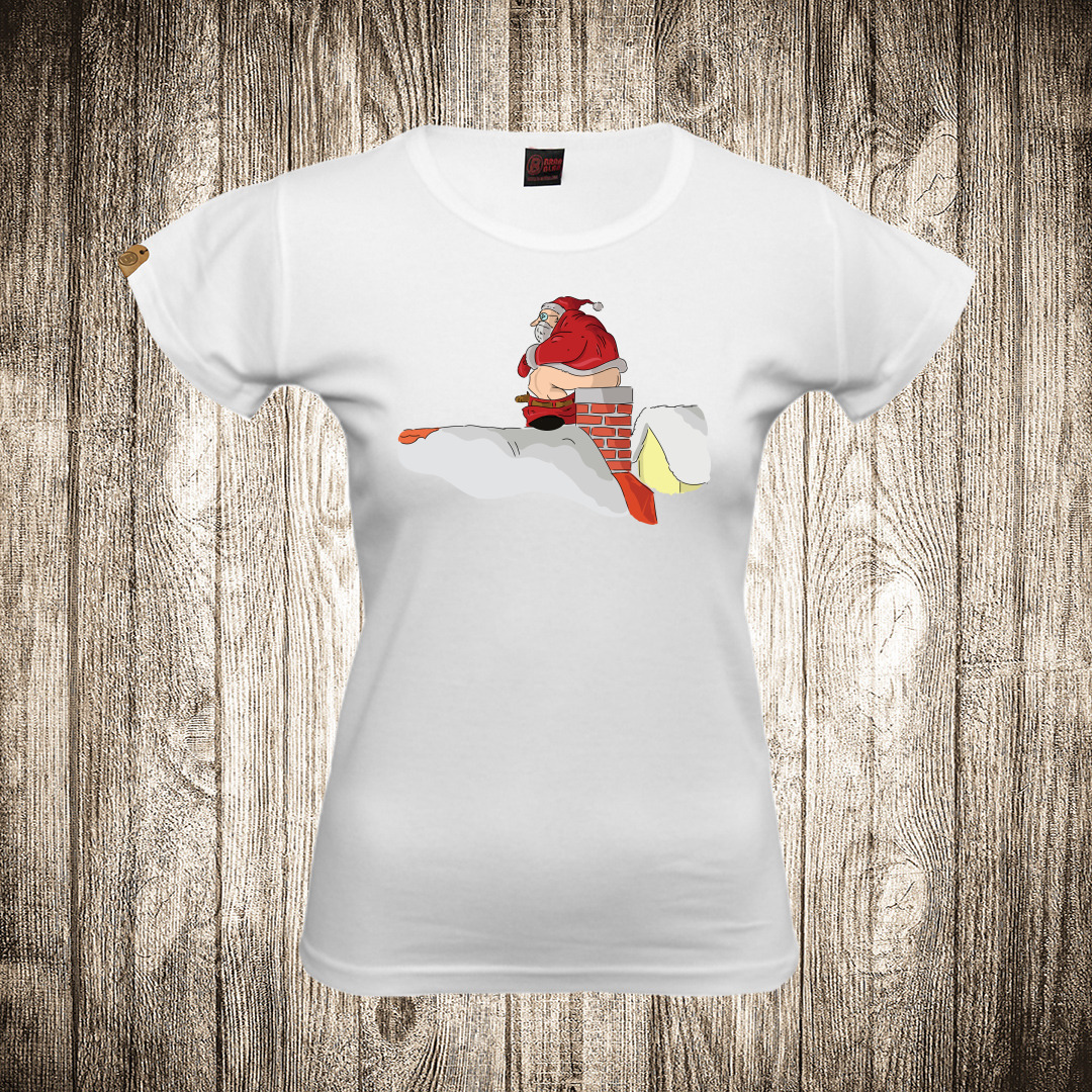 zenska majica boja bela slika deda mraz na krovu