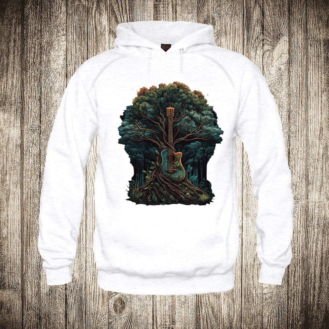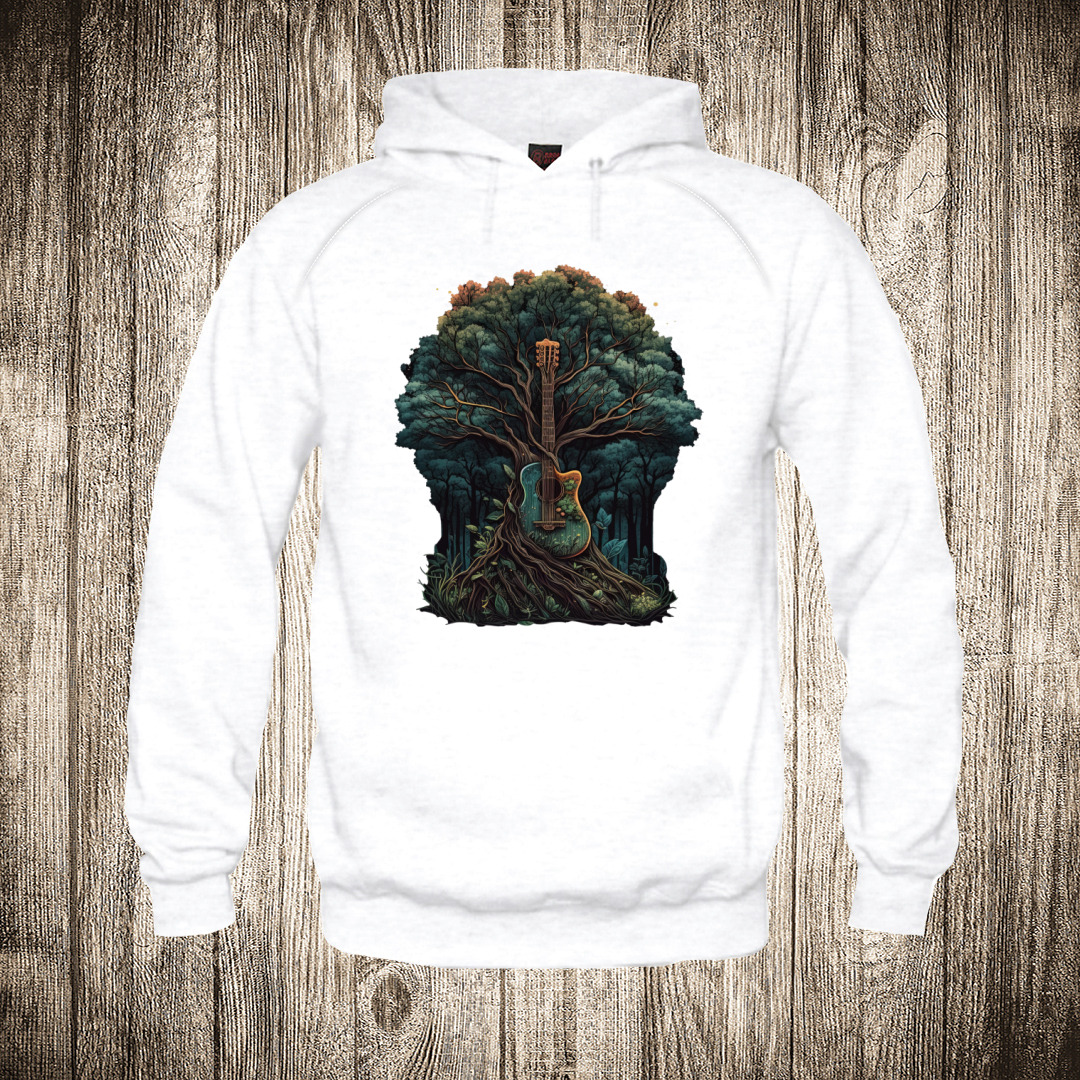 duks sa kapuljacom boja bela slika gitara i drvo muzika