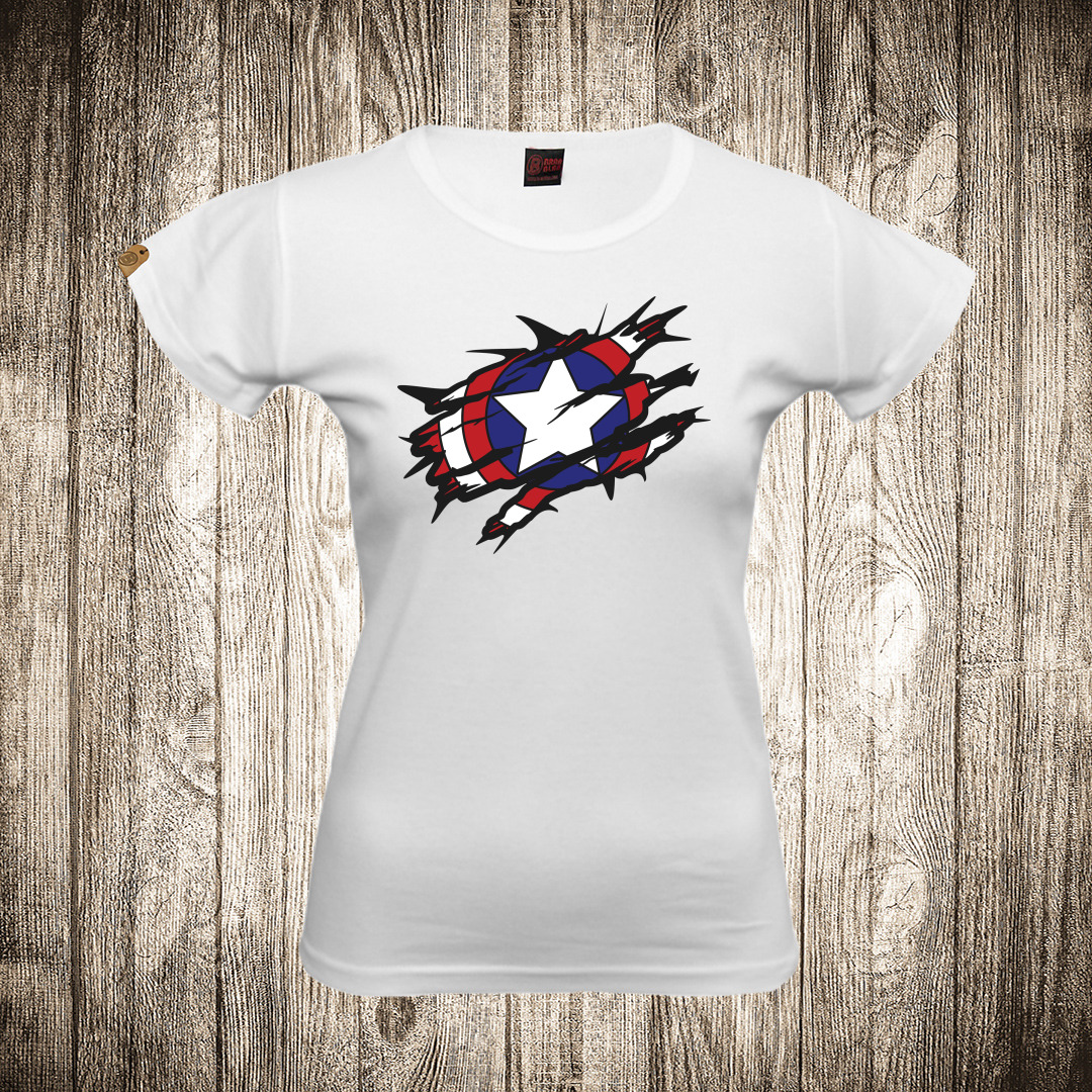 zenska majica boja bela slika kapetan amerika iscepana majica