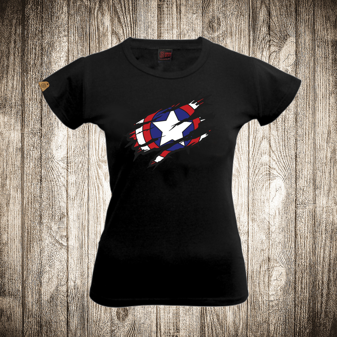 zenska majica boja crna slika kapetan amerika iscepana majica