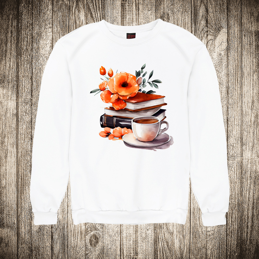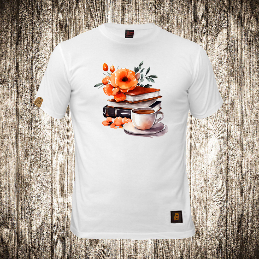 zenska majica boja bela slika knjige i cvece 10