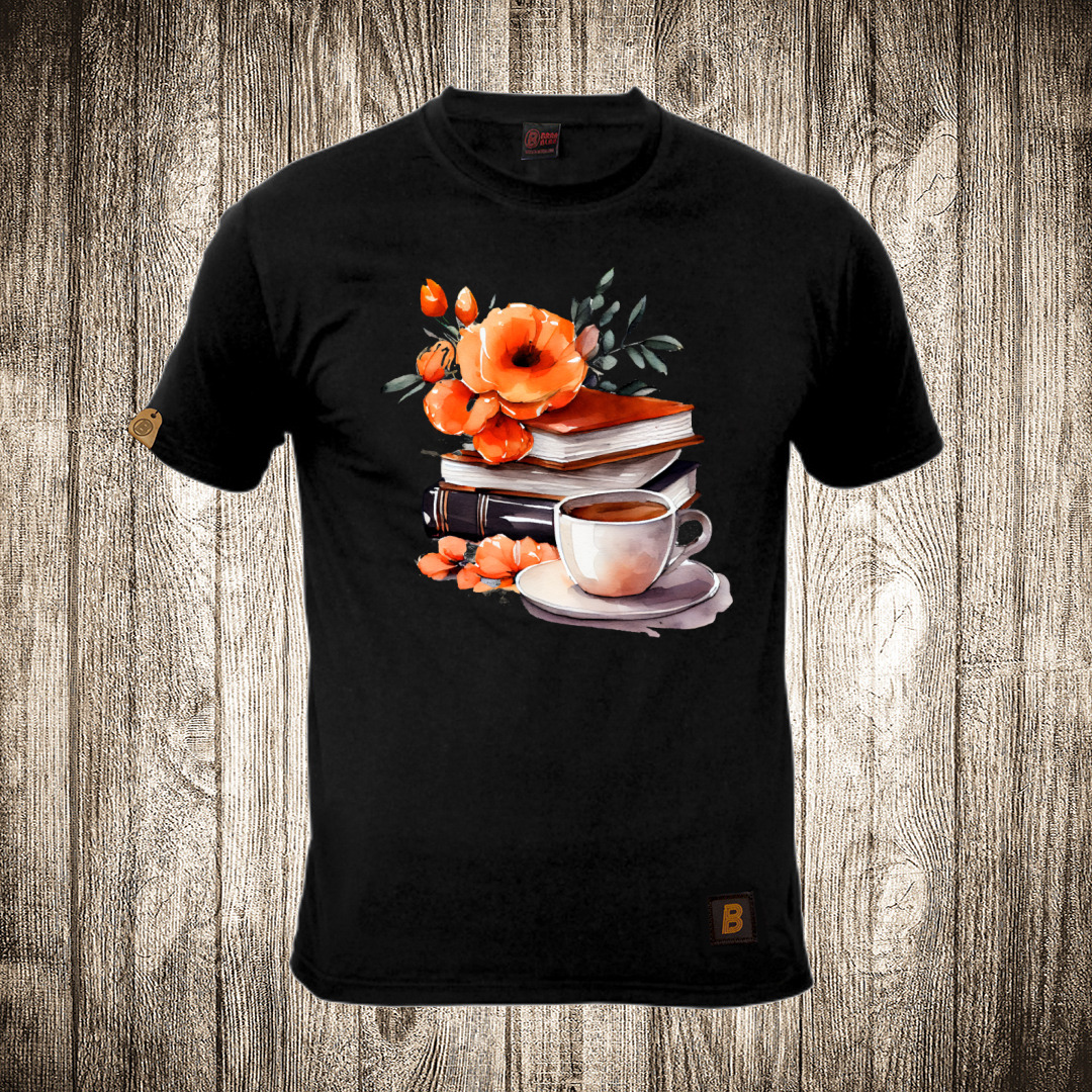 muska majica boja crna slika knjige i cvece 10