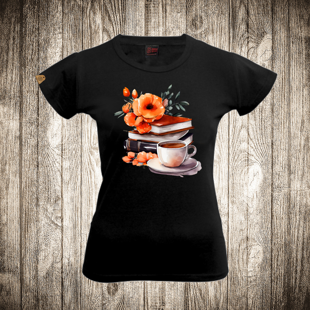 zenska majica boja crna slika knjige i cvece 10