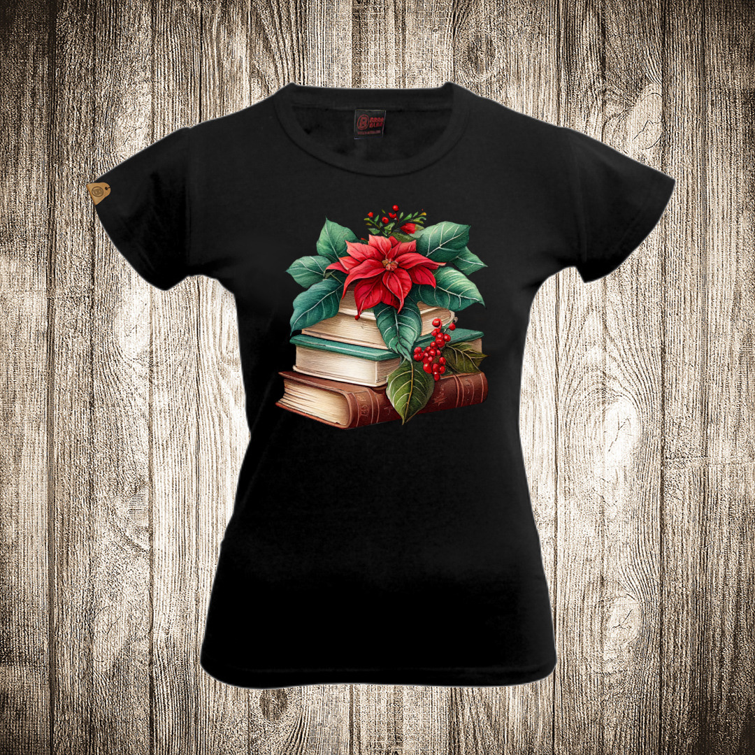 zenska majica boja crna slika knjige i cvece