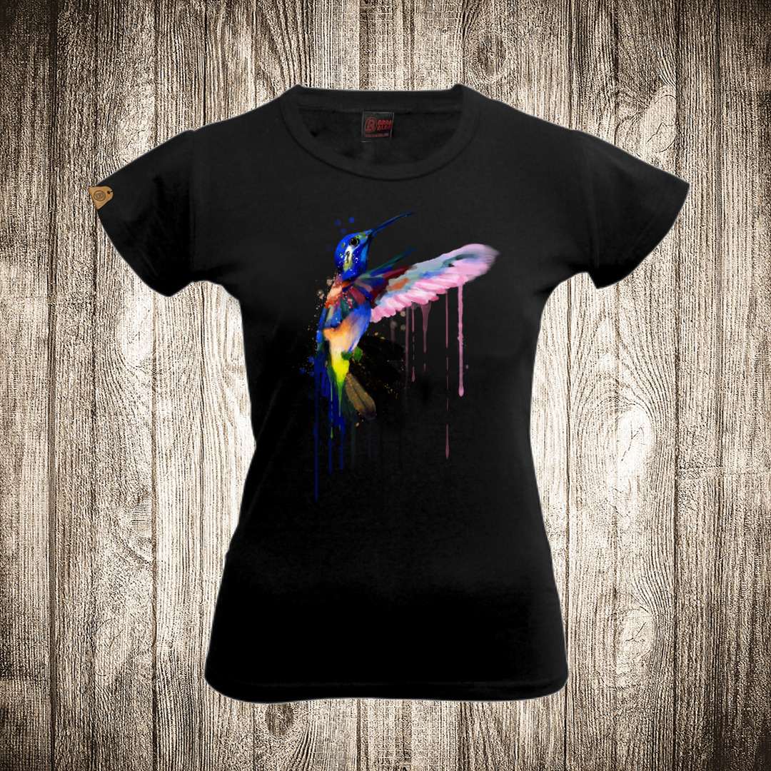 zenska majica boja crna slika kolibri