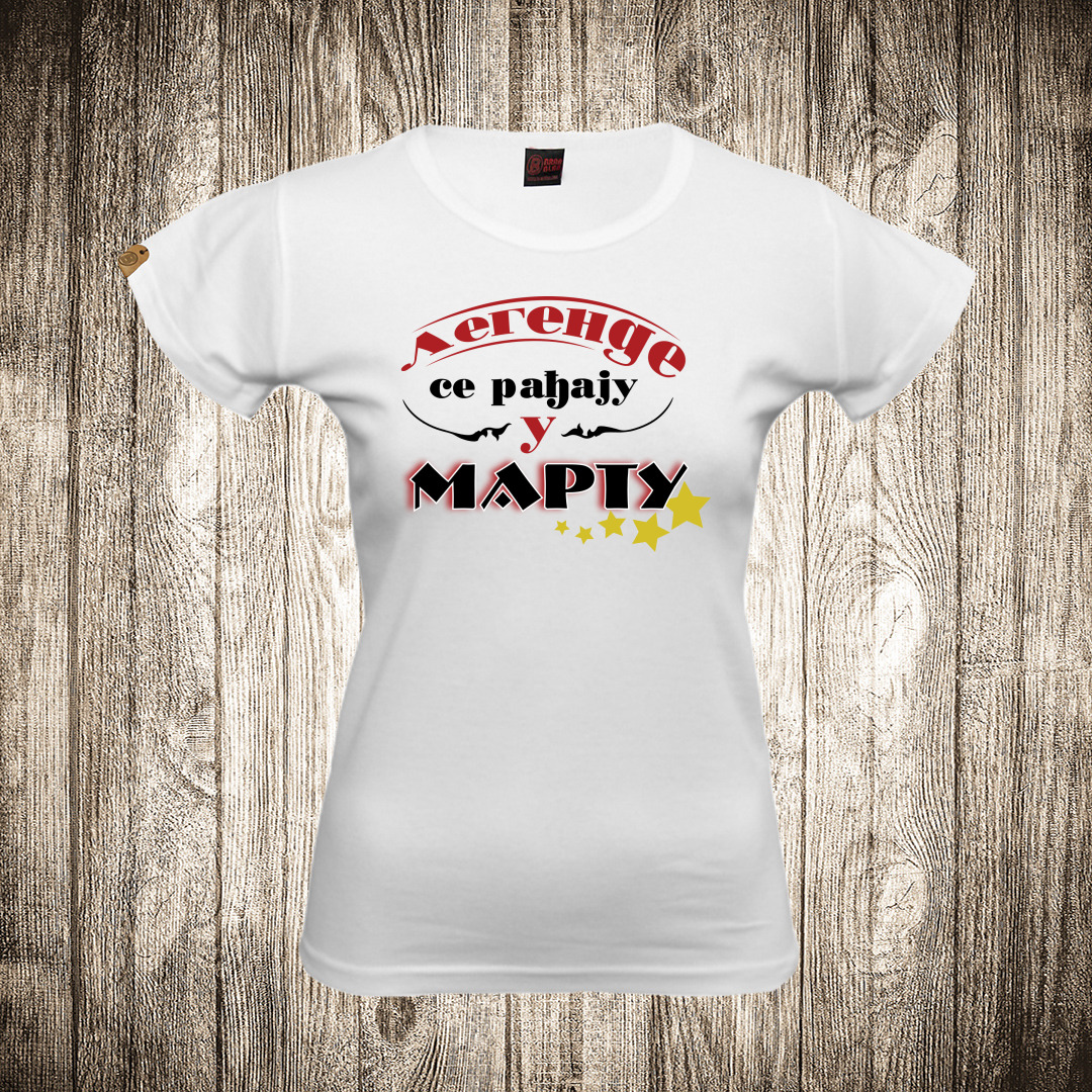 zenska majica boja bela slika legende se radjaju u martu upisati mesec po zelji
