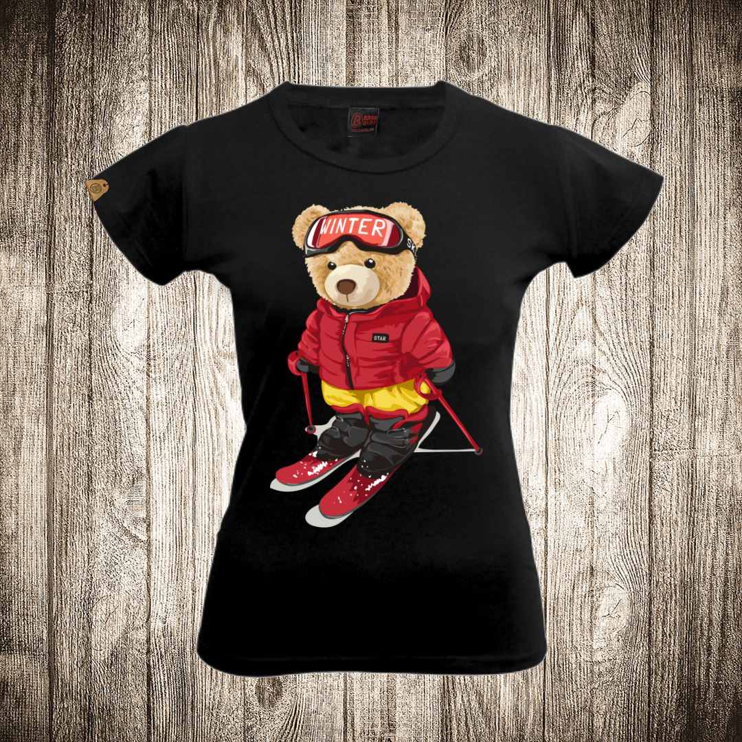 zenska majica boja crna slika meda teddy bear 7 skijas