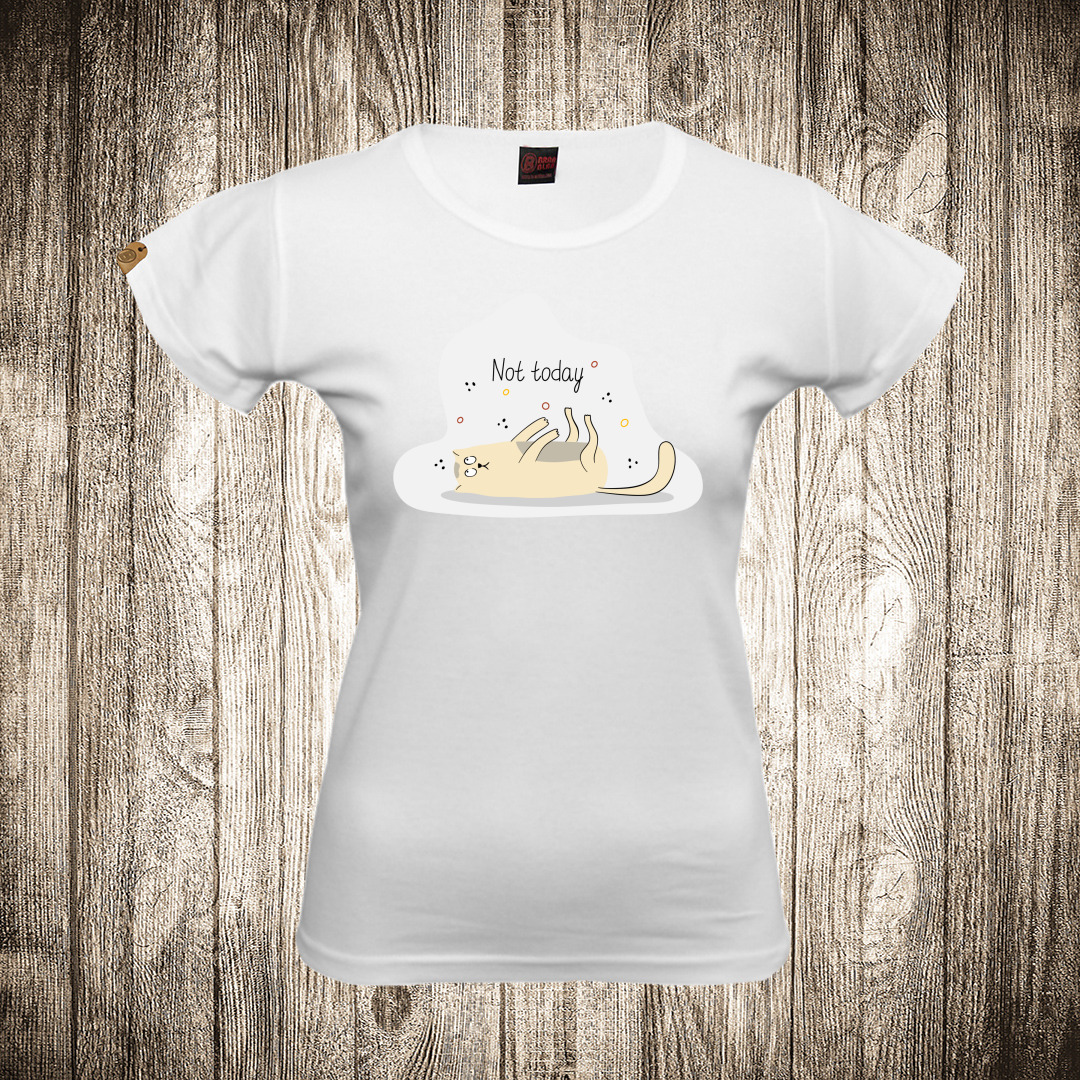 zenska majica boja bela slika not today macka