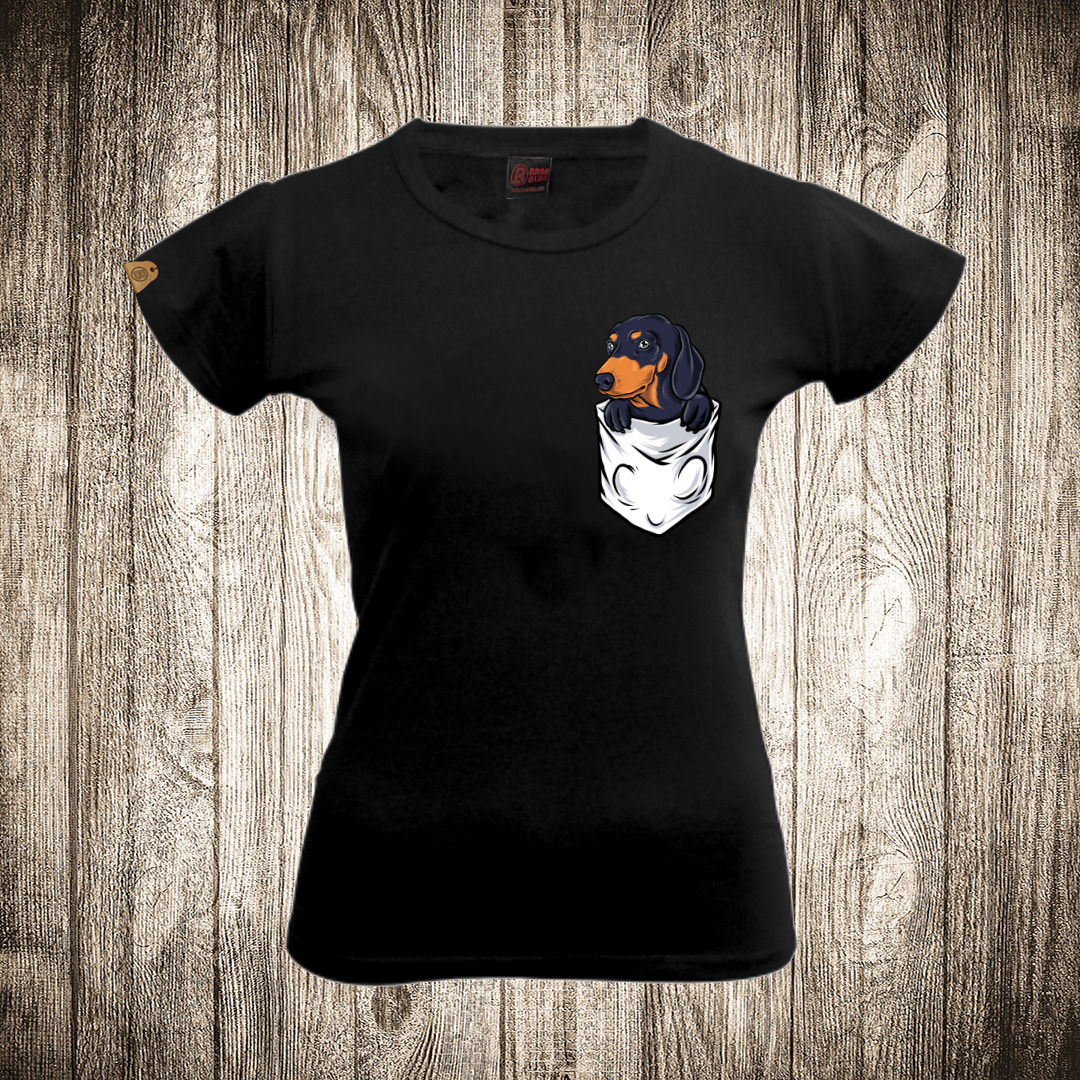 zenska majica boja crna slika pas 9 jazavicar dzepni