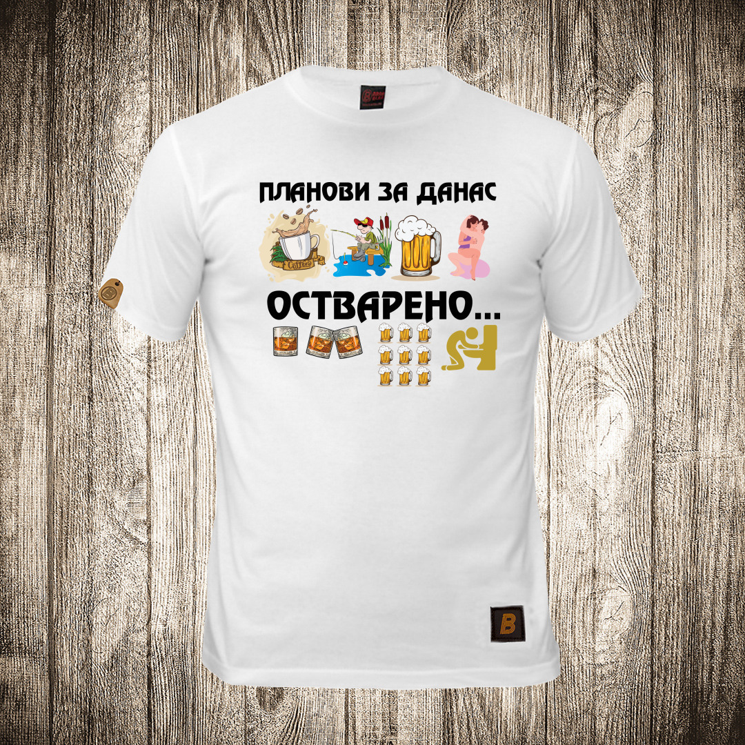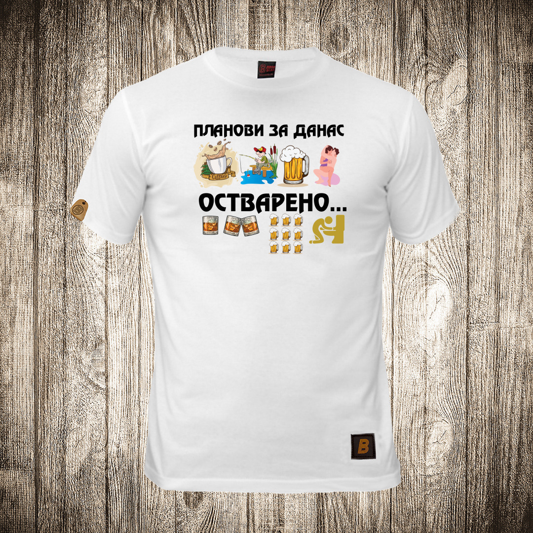 muska majica boja bela slika plan za danas pecanje i pivo