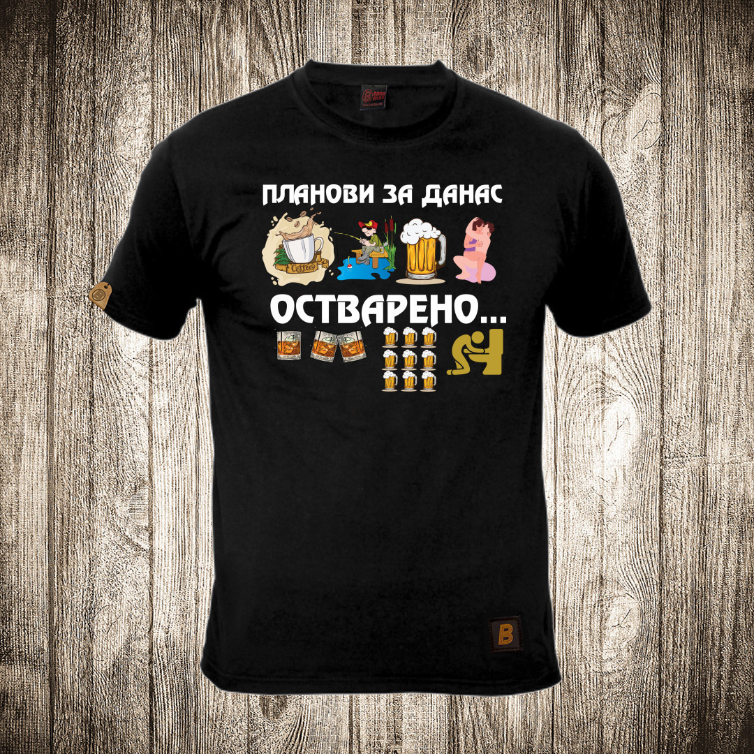 muska majica boja crna slika plan za danas pecanje i pivo