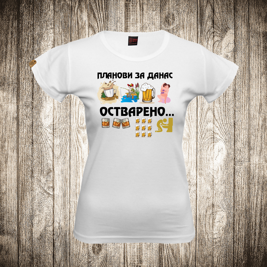 zenska majica boja bela slika plan za danas pecanje i pivo
