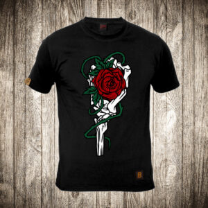 zenska majica boja crna slika ruza i kostur 4