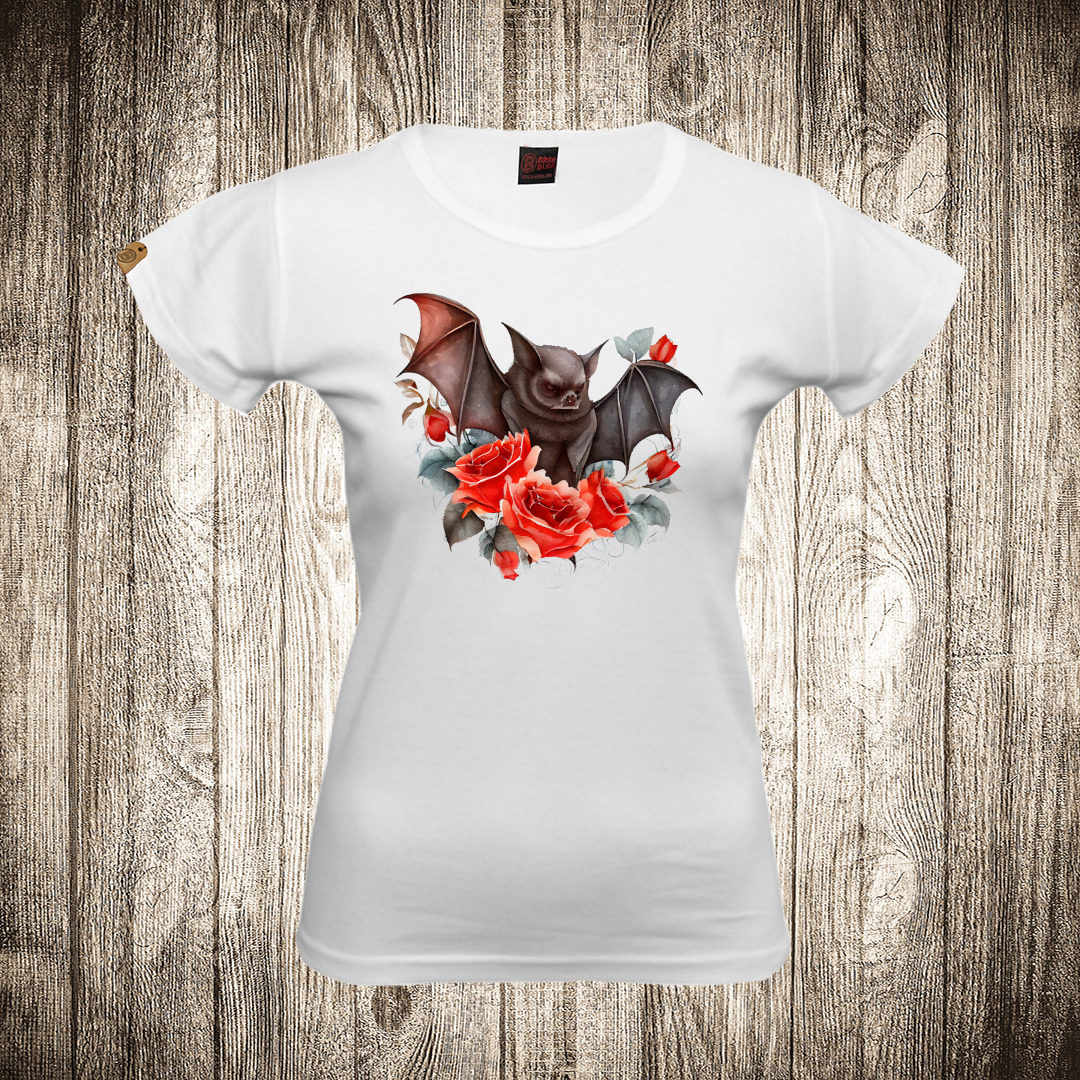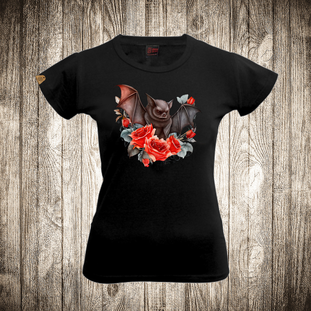 zenska majica boja crna slika slepi mis i cvece 2 vodene boje