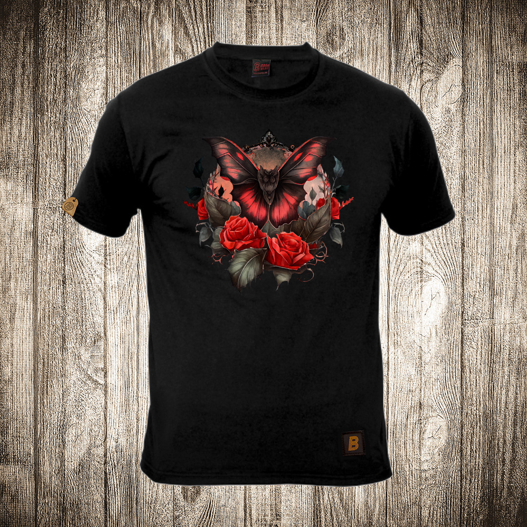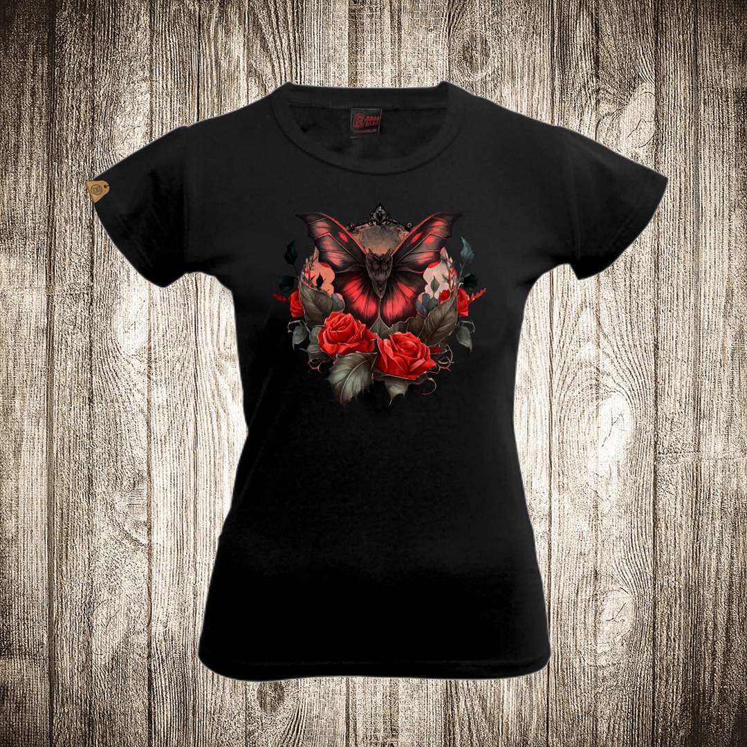 zenska majica boja crna slika slepi mis i cvece vodene boje