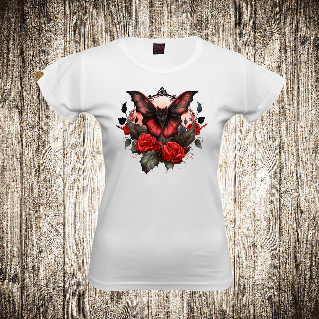 zenska majica boja bela slika slepi mis i cvece vodene boje