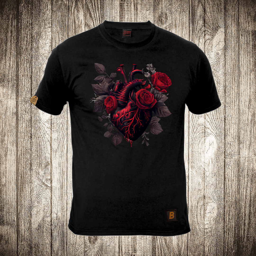 muska majica boja crna slika srce od ruze 2
