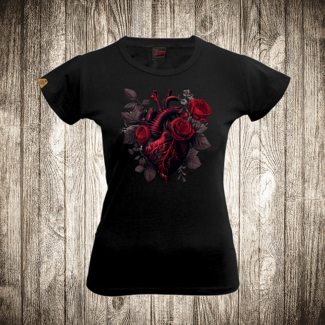 zenska majica boja crna slika srce od ruze 2