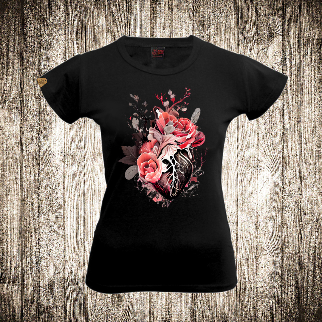 zenska majica boja crna slika srce od ruze 3
