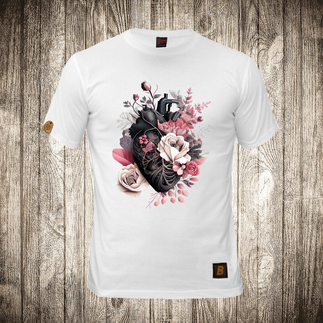 muska majica boja bela slika srce od ruze