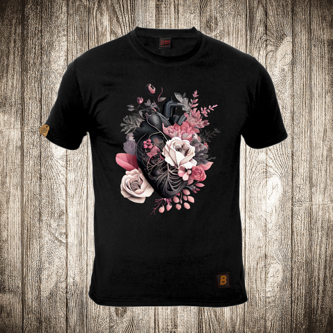 muska majica boja crna slika srce od ruze