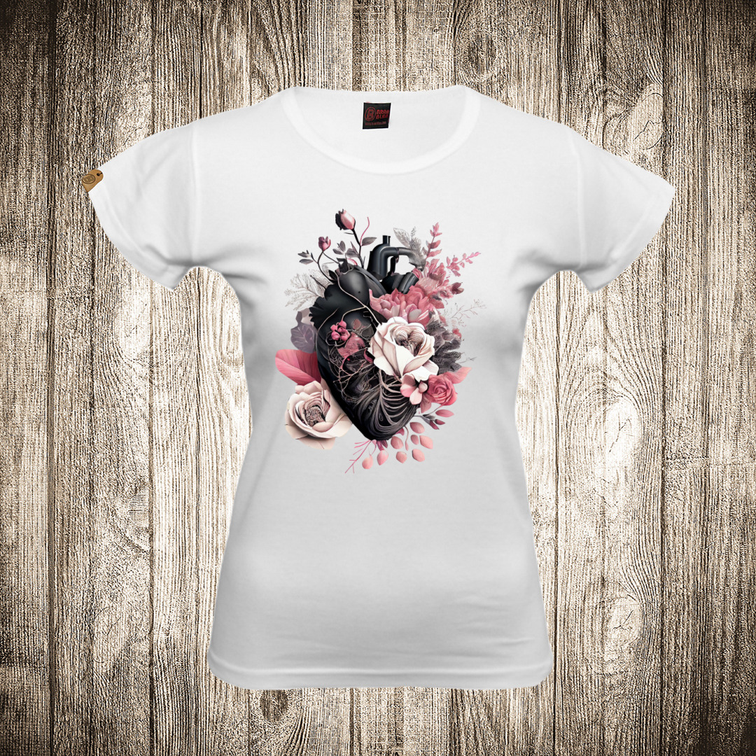 zenska majica boja bela slika srce od ruze