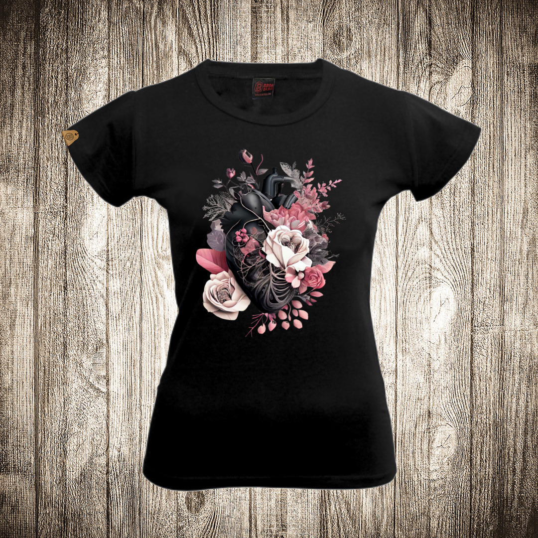 zenska majica boja crna slika srce od ruze