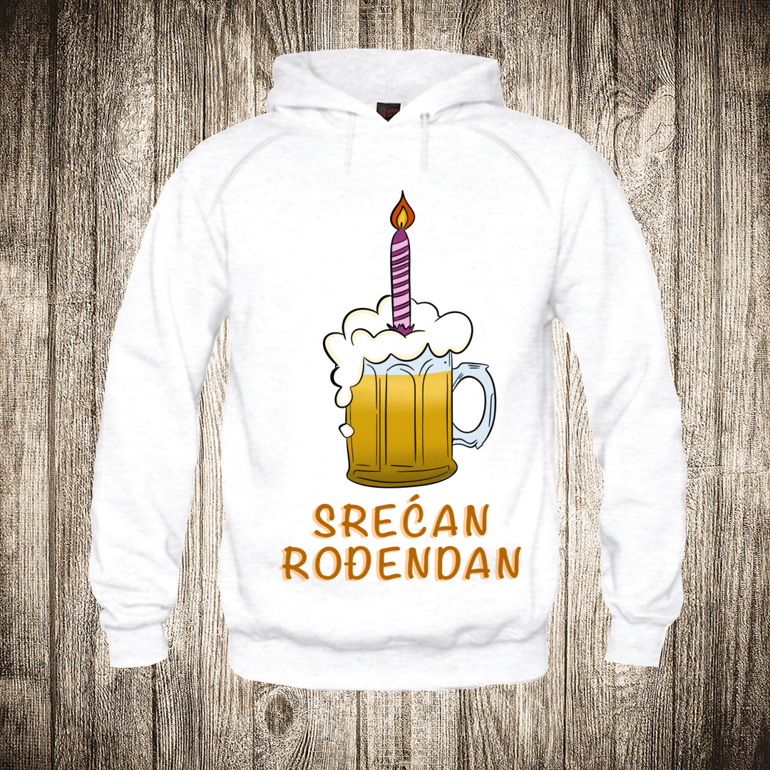 duks sa kapuljacom boja bela slika srecan rodjendan pivo