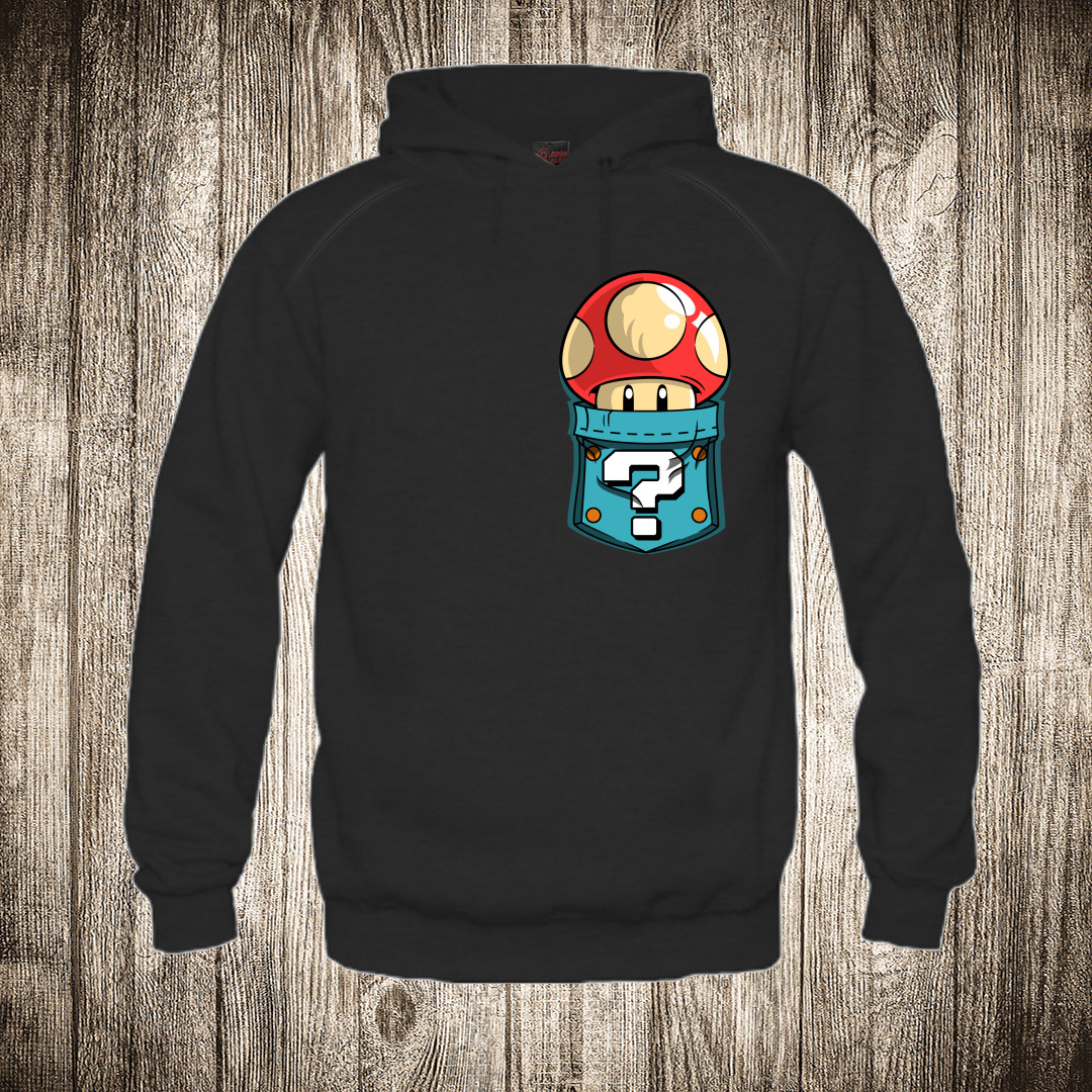 duks sa kapuljacom boja crna slika super mario pecurka dzepni