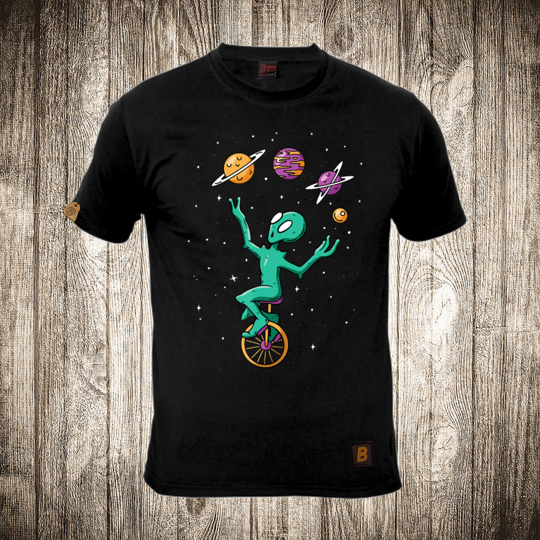 muska majica boja crna slika vanzemaljski cirkus