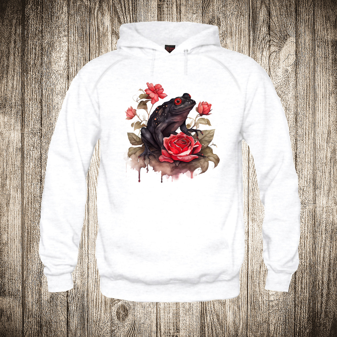 duks sa kapuljacom boja crna slika zaba i cvece 2 vodene boje