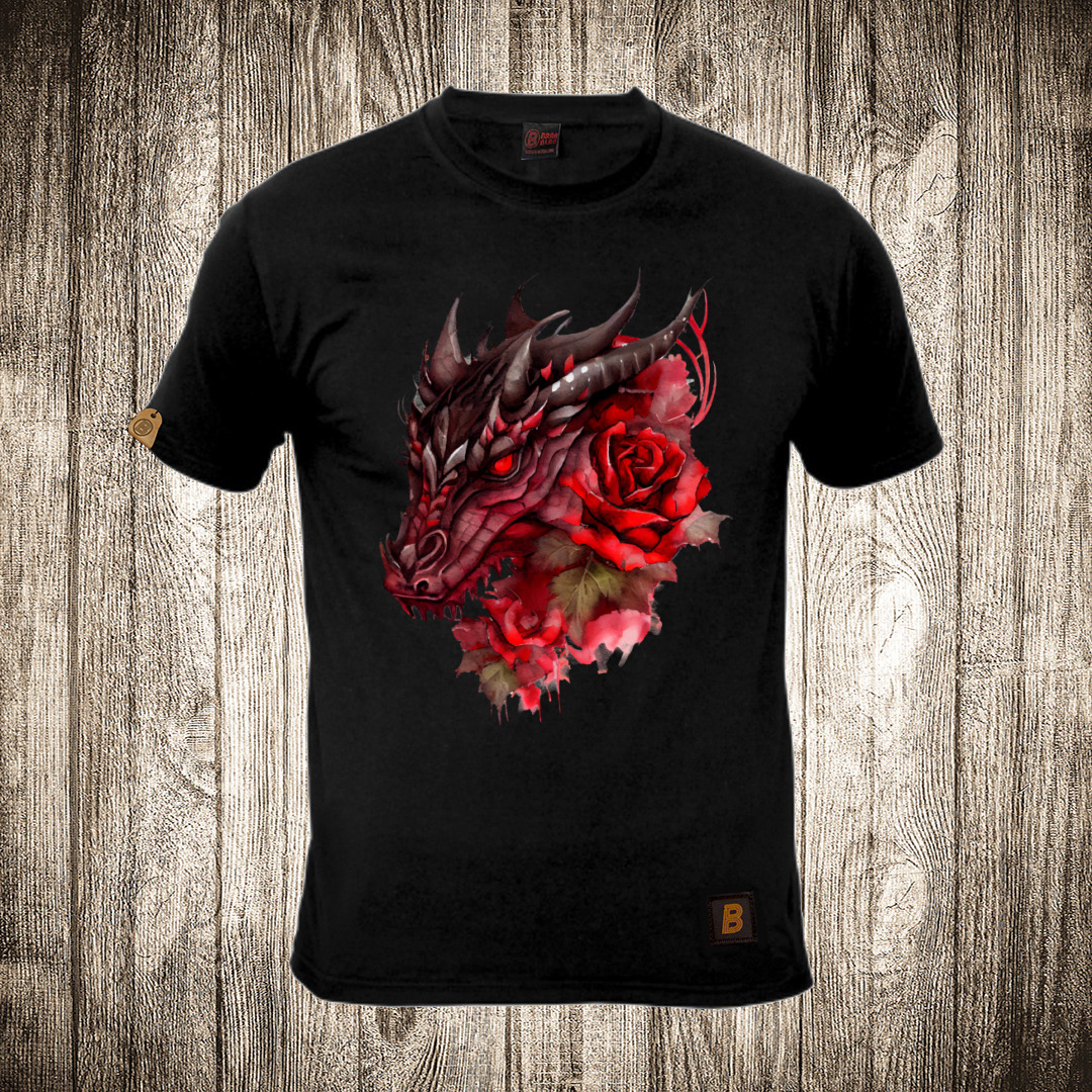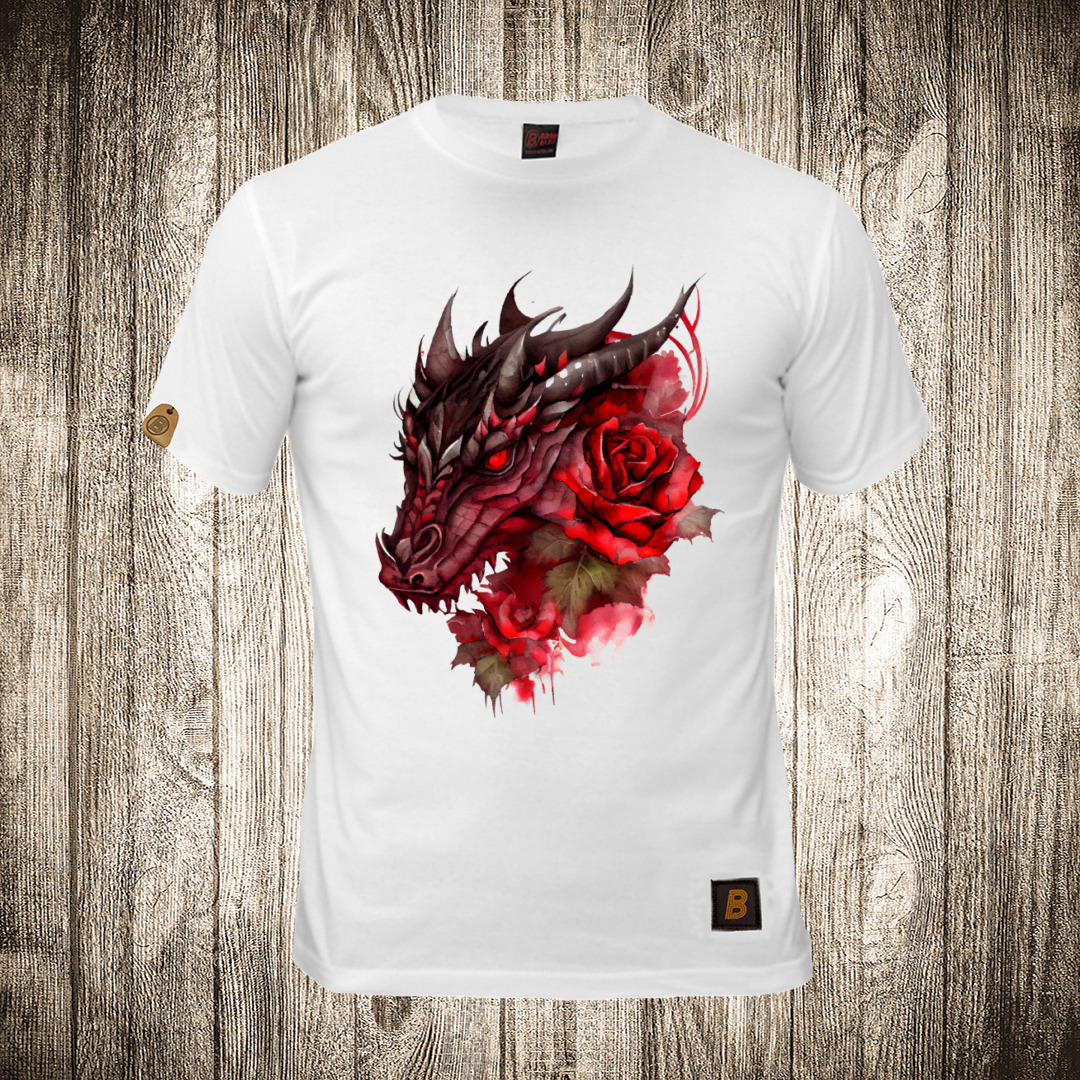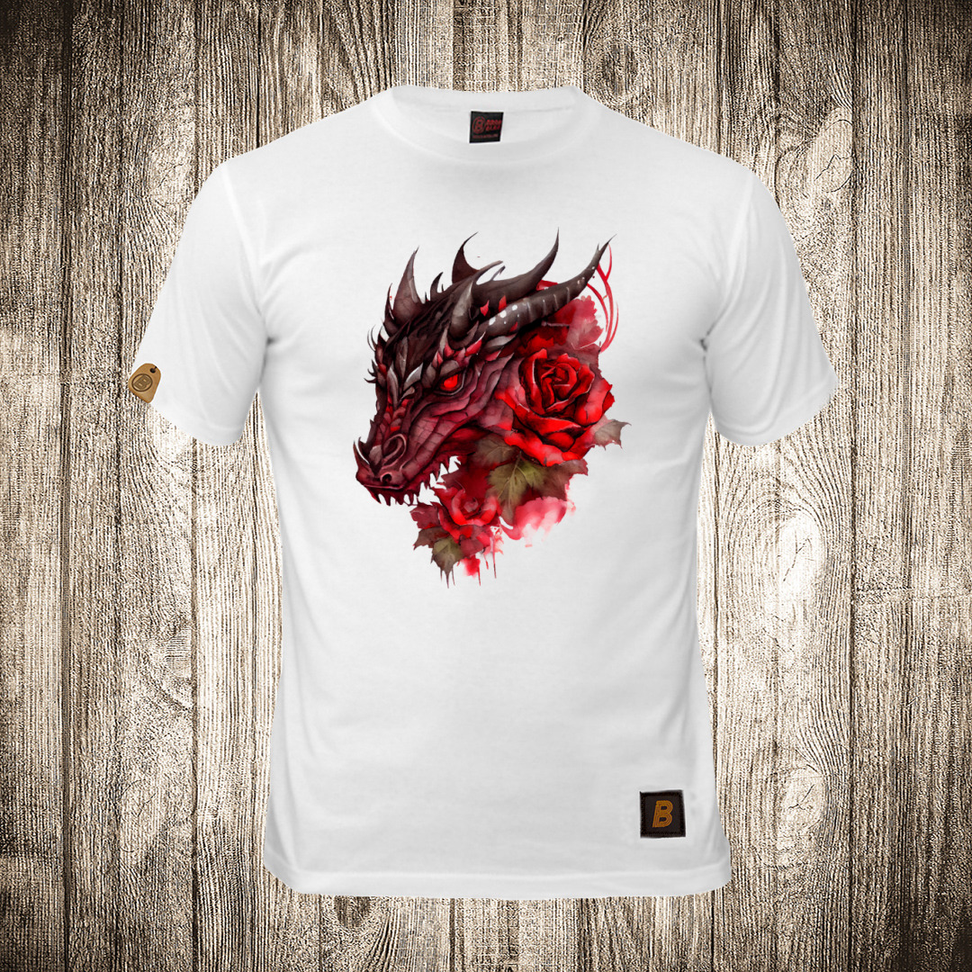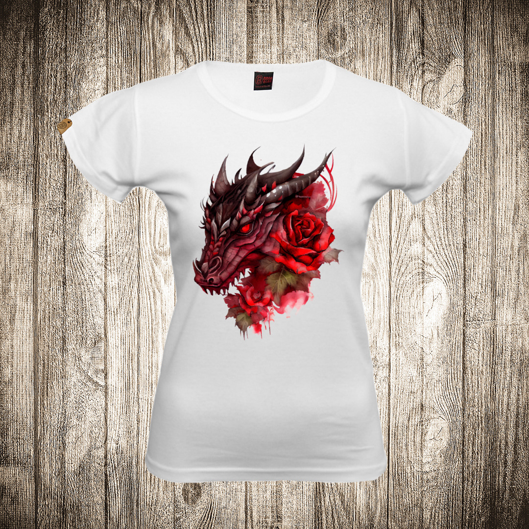 zenska majica boja bela slika zmaj i cvece vodene boje